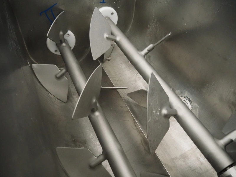 Risco cooled vacuum double shaft paddle mixer, model: RS 200 SV, number: 000109, year of construction: 1988, volume: 200 liter, Rietschle vacuum pump, type: VGA-15, capacity: 14/16 m³ per hour, total dimensions: 1400 mm x 800 mm x 1500 mm.