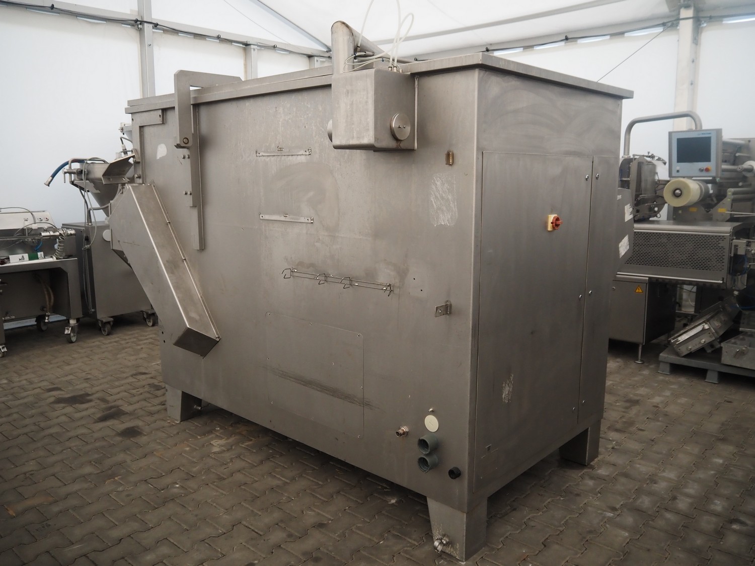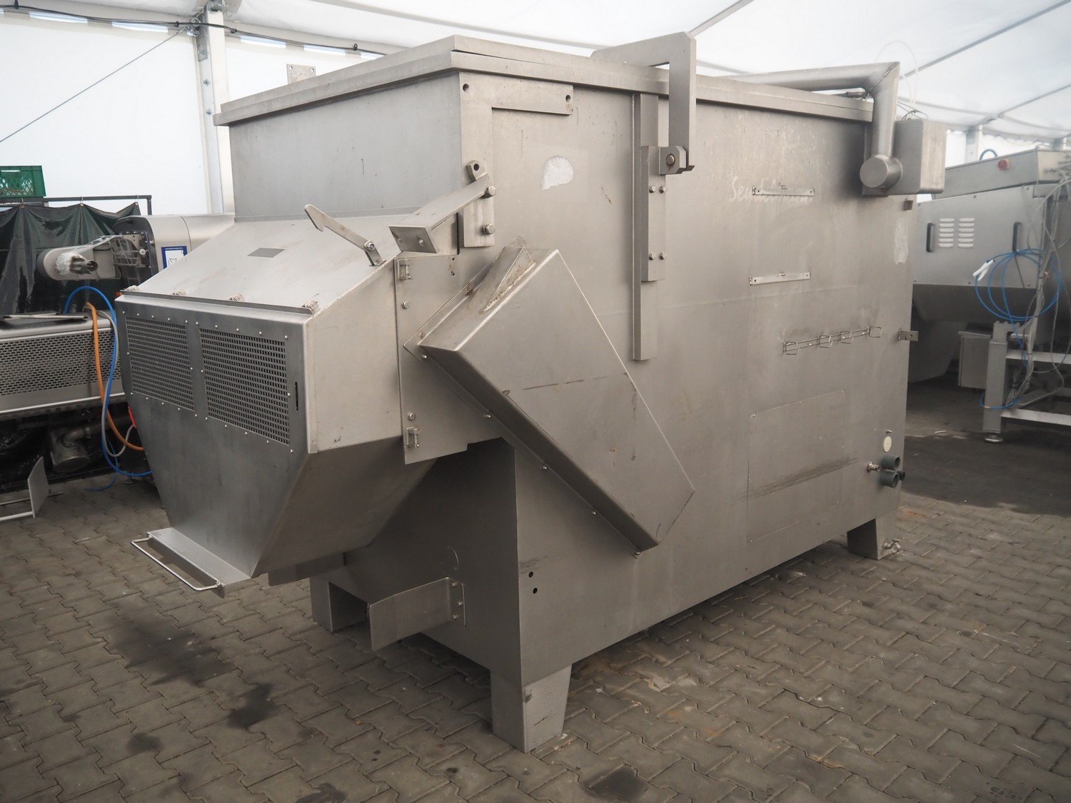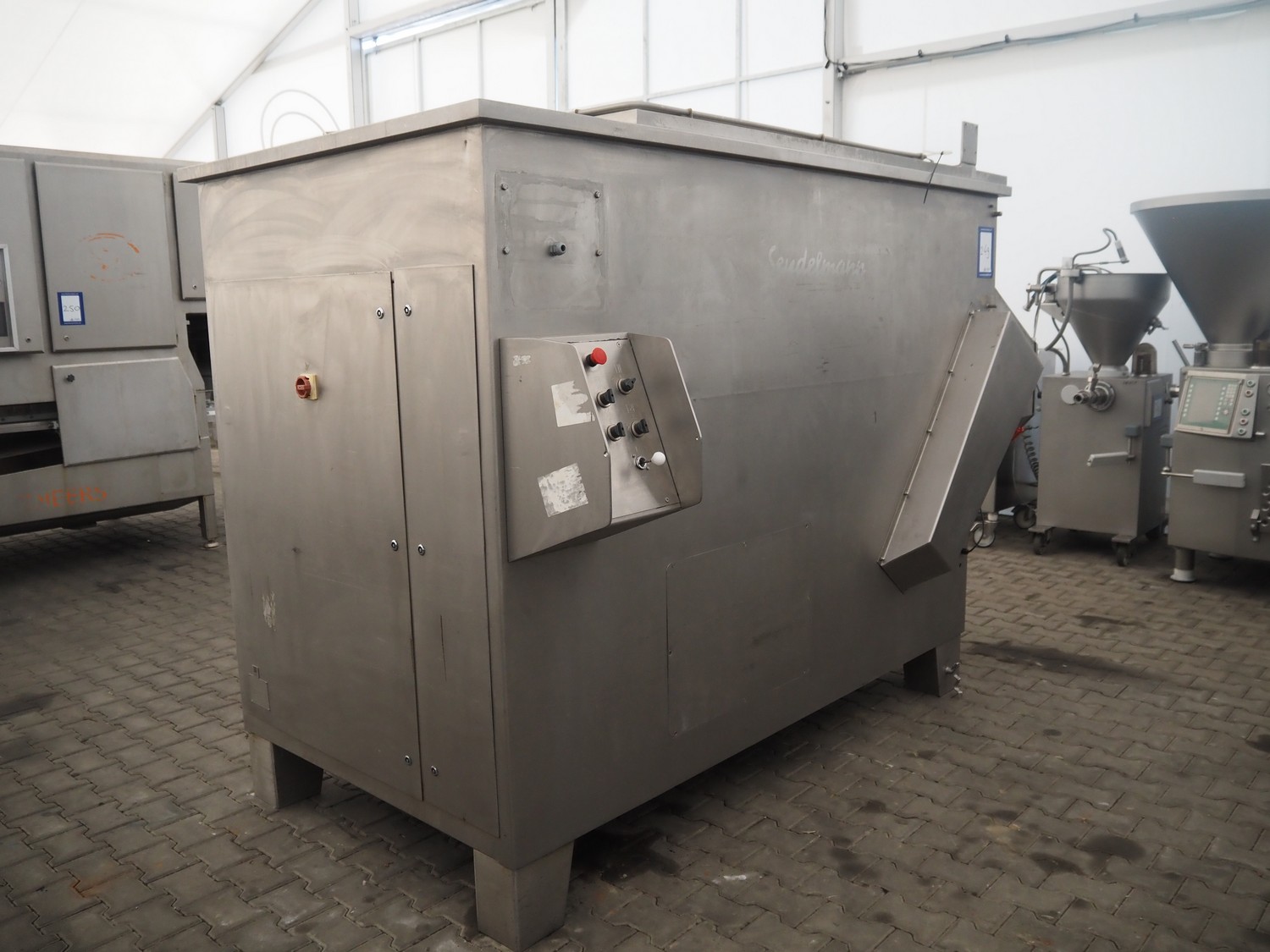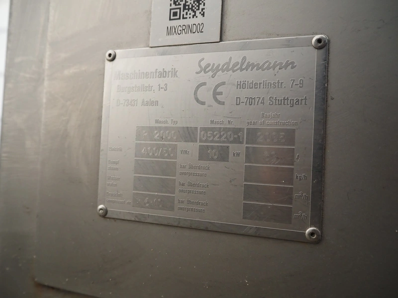 Seydelmann double shaft paddle-mixer, type: P 2000, machine number: 05220-1, year of construction: 2005, 400 V, 50 Hz, 39 A, 10 kW, 6-10 bar, volume: 2000 liter, dimensions: 3400 mm x 2100 mm x 2300 mm.
