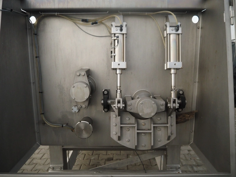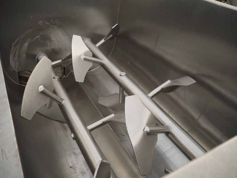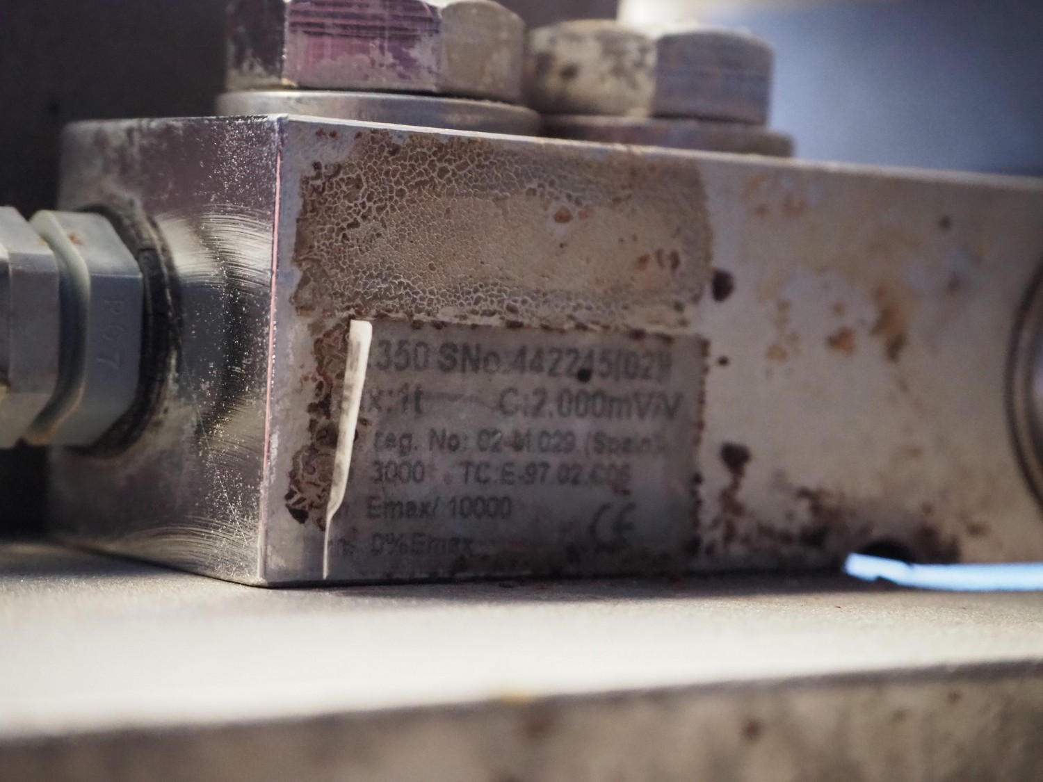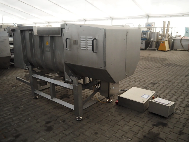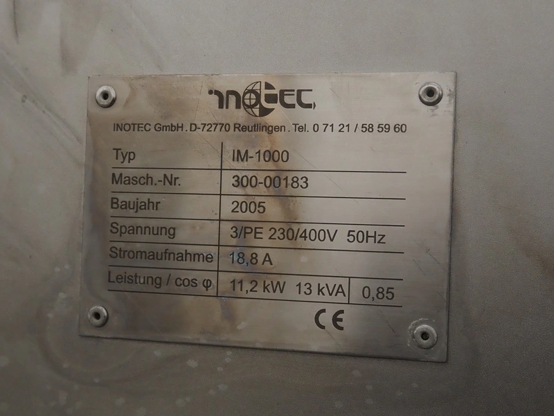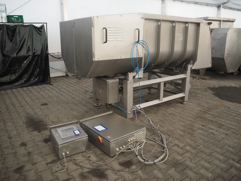Inotec double shaft paddle-mixer on weighing cells, type: IM-1000, machine number: 300-00183, year of construction: 2005, 230/400V, 3 Ph, 50 Hz, 18.8 A, 11.2 kW, volume: 1500 litres, dimensions: 3300 mm x 1350 mm x 1800 mm.