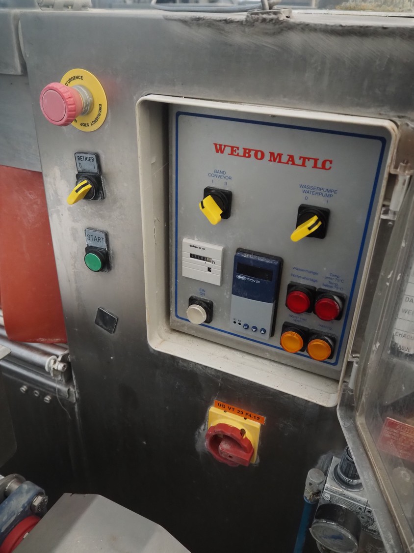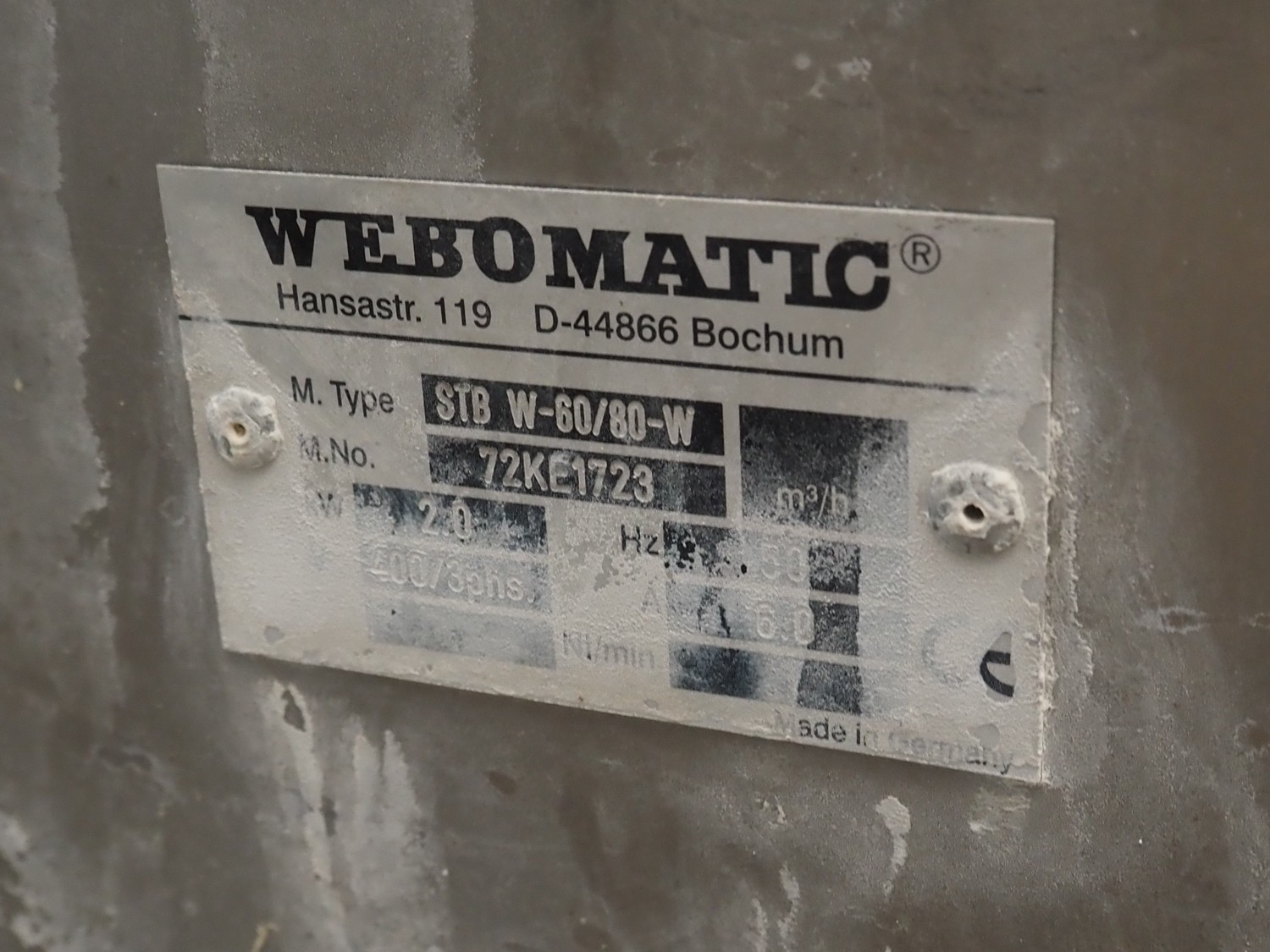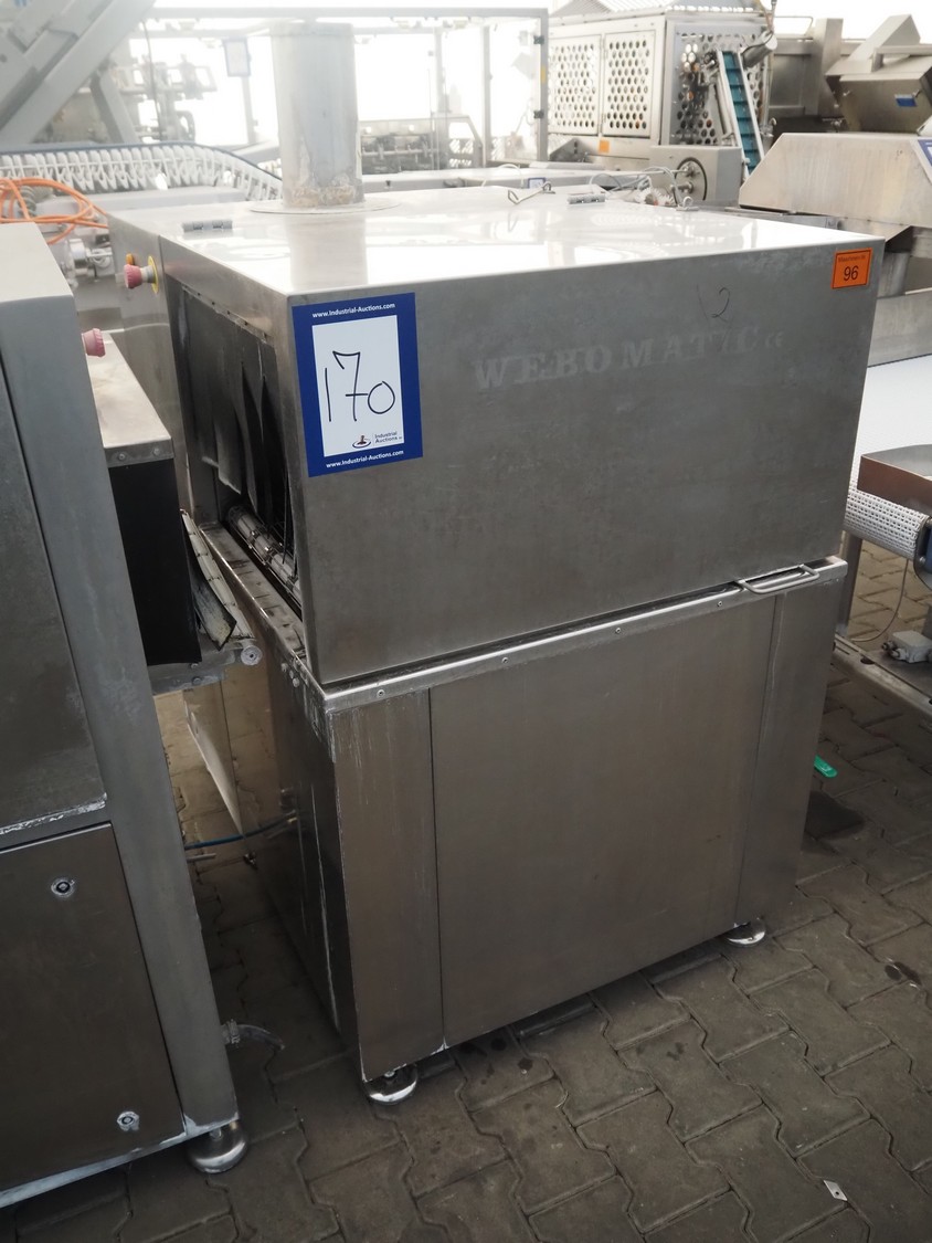 Webomatic dip tank, type: STB W-60/80-W, machine number: 72KE1723, 400 V, 3 Ph, 50 Hz, 6 A, 2 kW, s/s mesh belt, belt width: 540 mm, total dimensions: 1200 mm x 900 mm x 1600 mm.