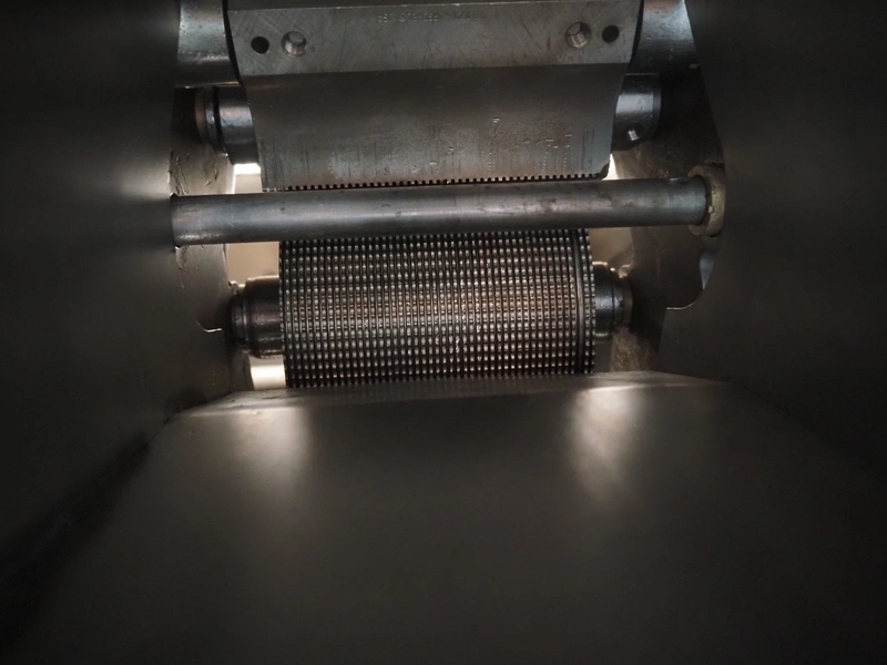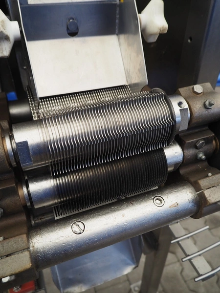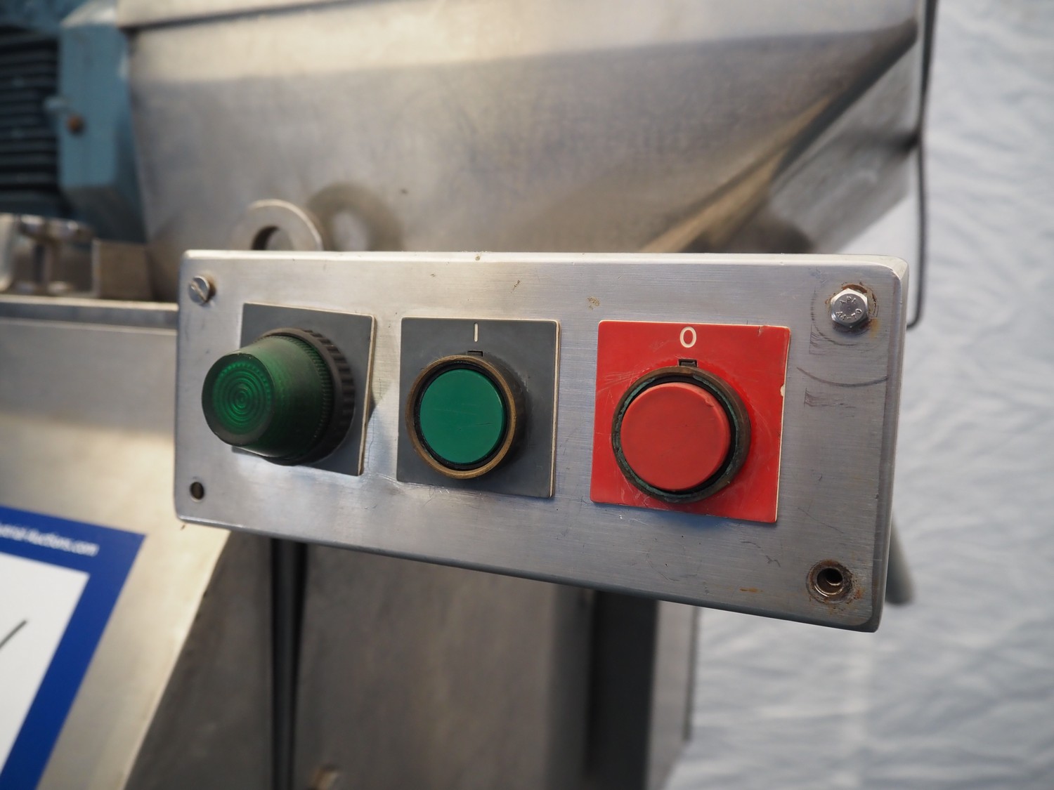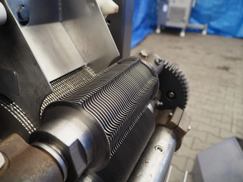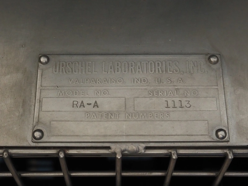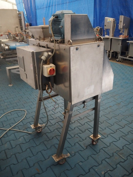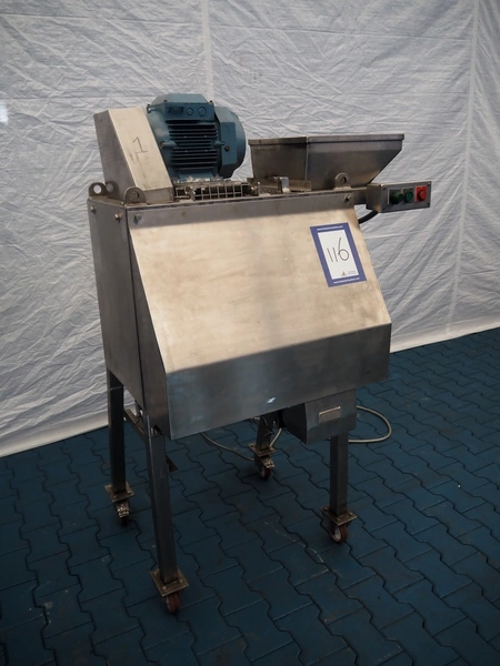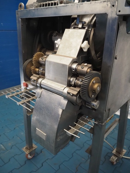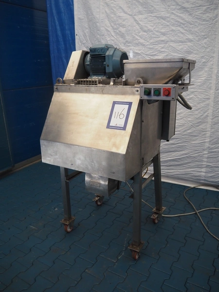 Urschel mobile slicer, model: RA-A, serial number: 1113, working width: 140 mm, distance between knives: 3 mm, total dimensions: 1100 mm x 850 mm x 1800 mm.