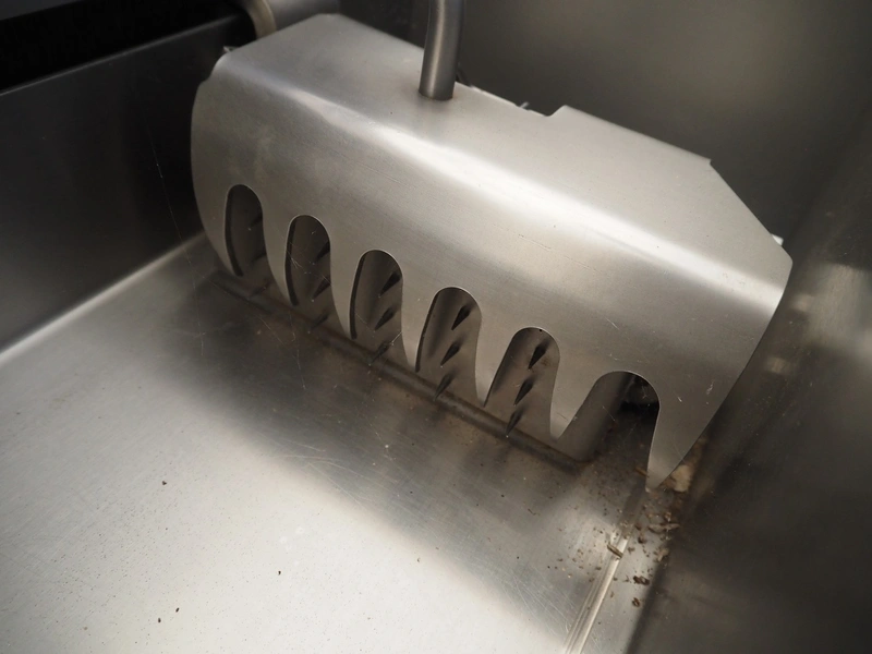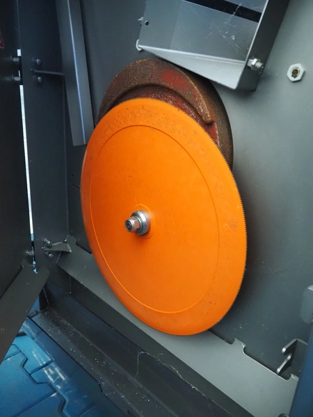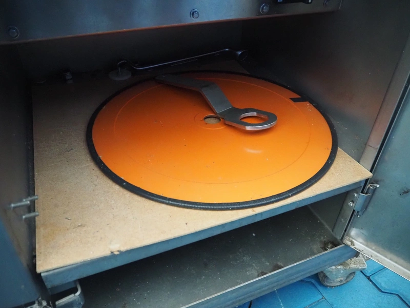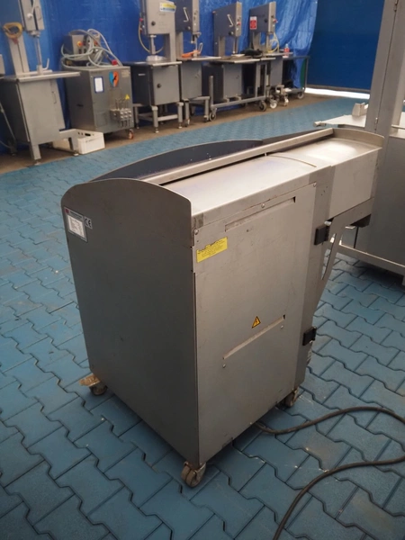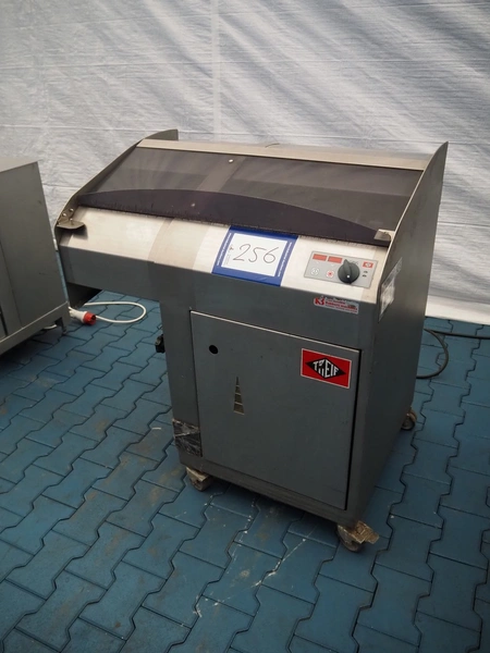 Treif Maschinenbau GmbH mobile bread slicer, model: Diskus, machine number: 601003.60168.5364, year of construction: 2004, 400 V, 3 Ph, 50 Hz, 2.25 A, 0.9 kW, weight: 200 kg, chamber dimensions: 500 mm x 200 mm x 170 mm, total dimensions: 1000 mm x 700 mm x 1050 mm.
