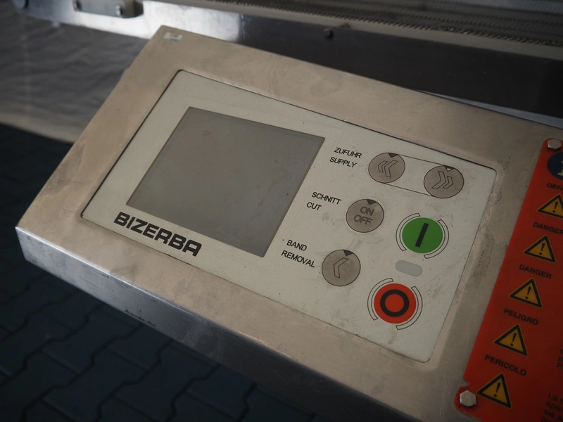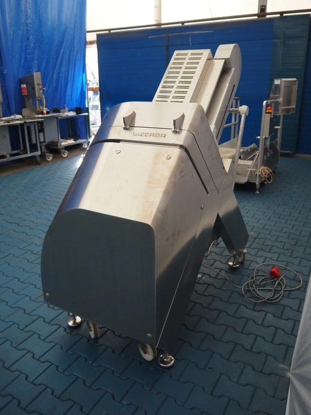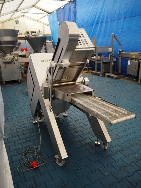 Bizerba mobile slicer, s/s mesh belt, belt width: 300 mm, total dimensions: 2370 mm x 890 mm x 1830 mm.