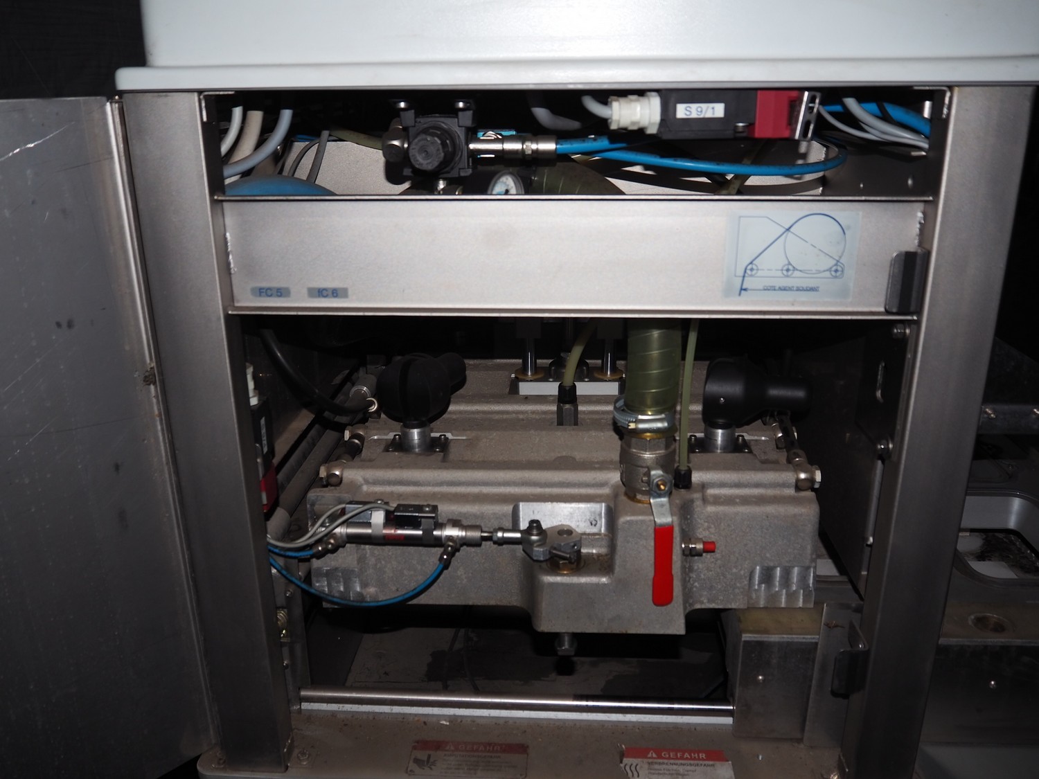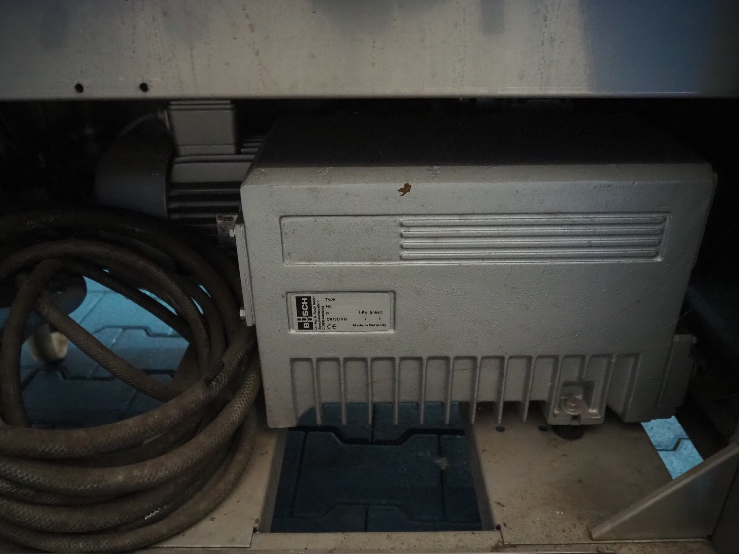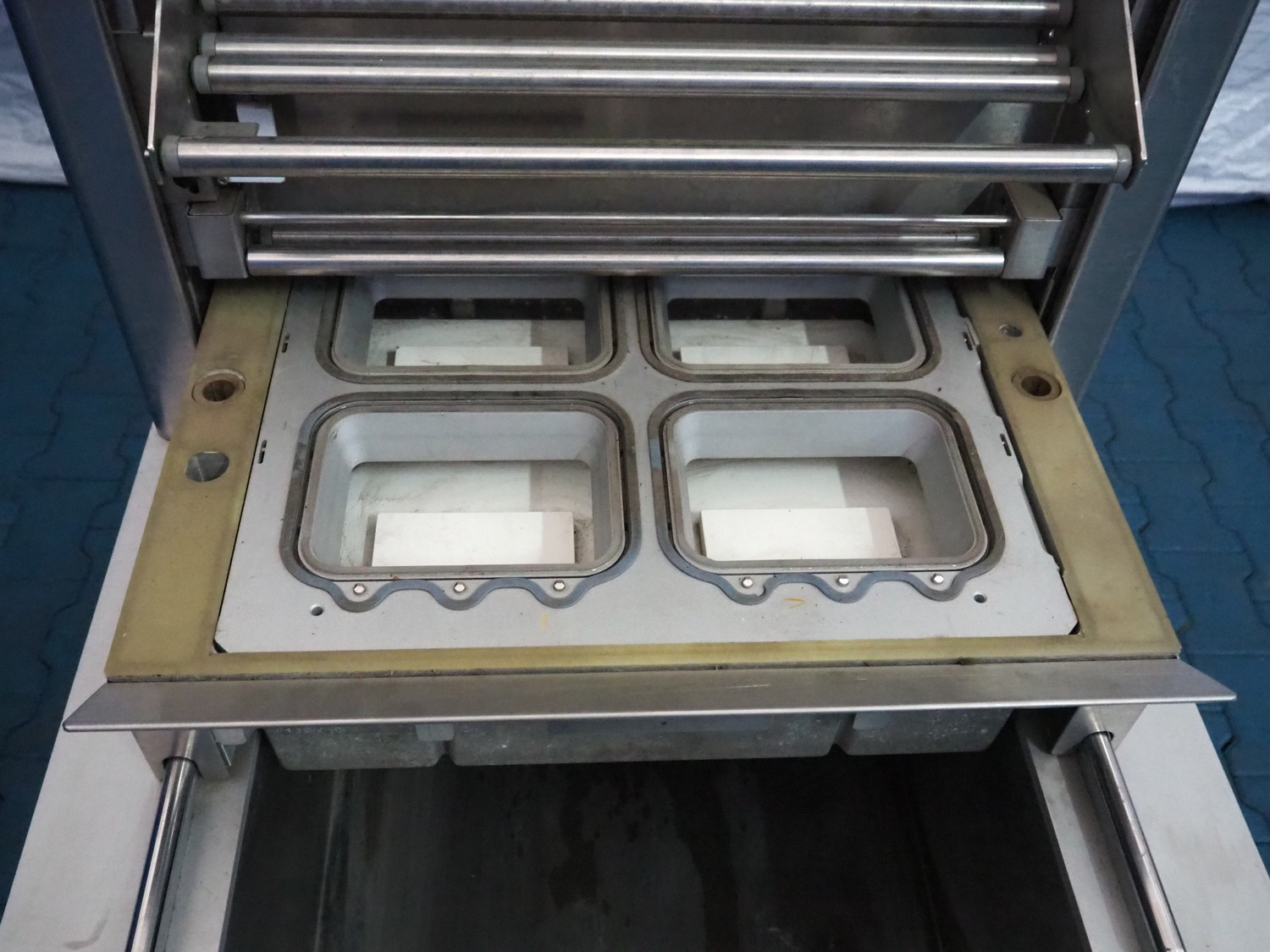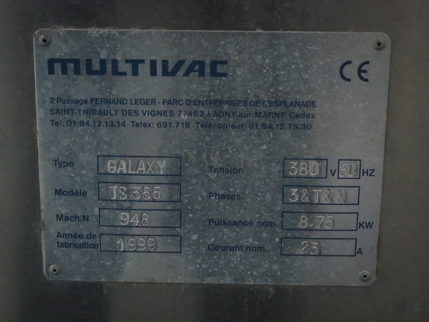 Multivac mobile traysealer, type: Galaxy, model: TS 355, machine number: 948, year of construction: 1999, 380 V, 3 Ph, 50 Hz, 23 A, 8.75 kW, Busch vacuum pump, type: RA 0100 E 5Z1, number: 01003130, capacity: 100 m³ per hour, dimensions dyes: (4x) 180 mm x 140 mm, total dimensions: 1400 mm x 800 mm x 1550 mm.