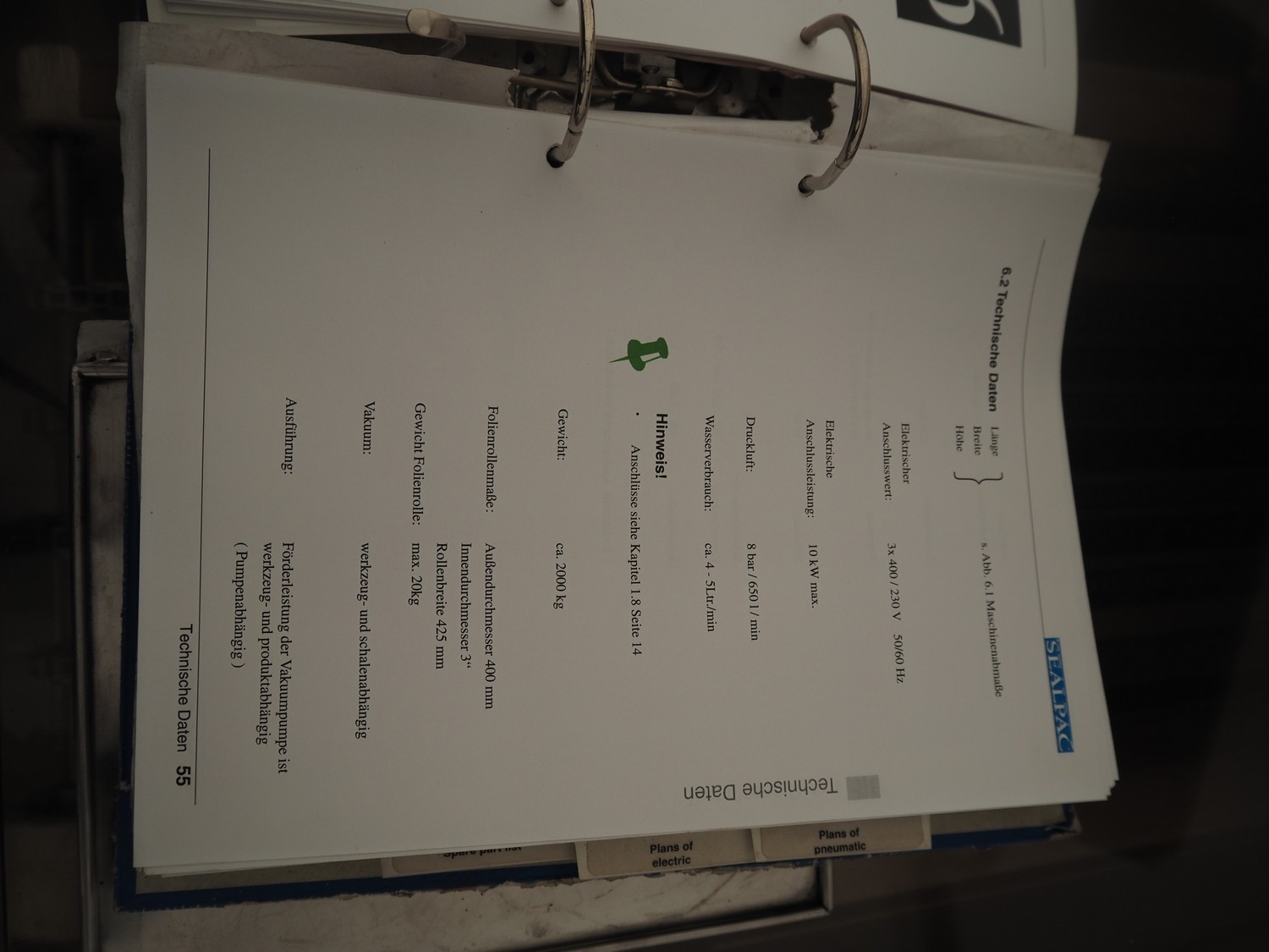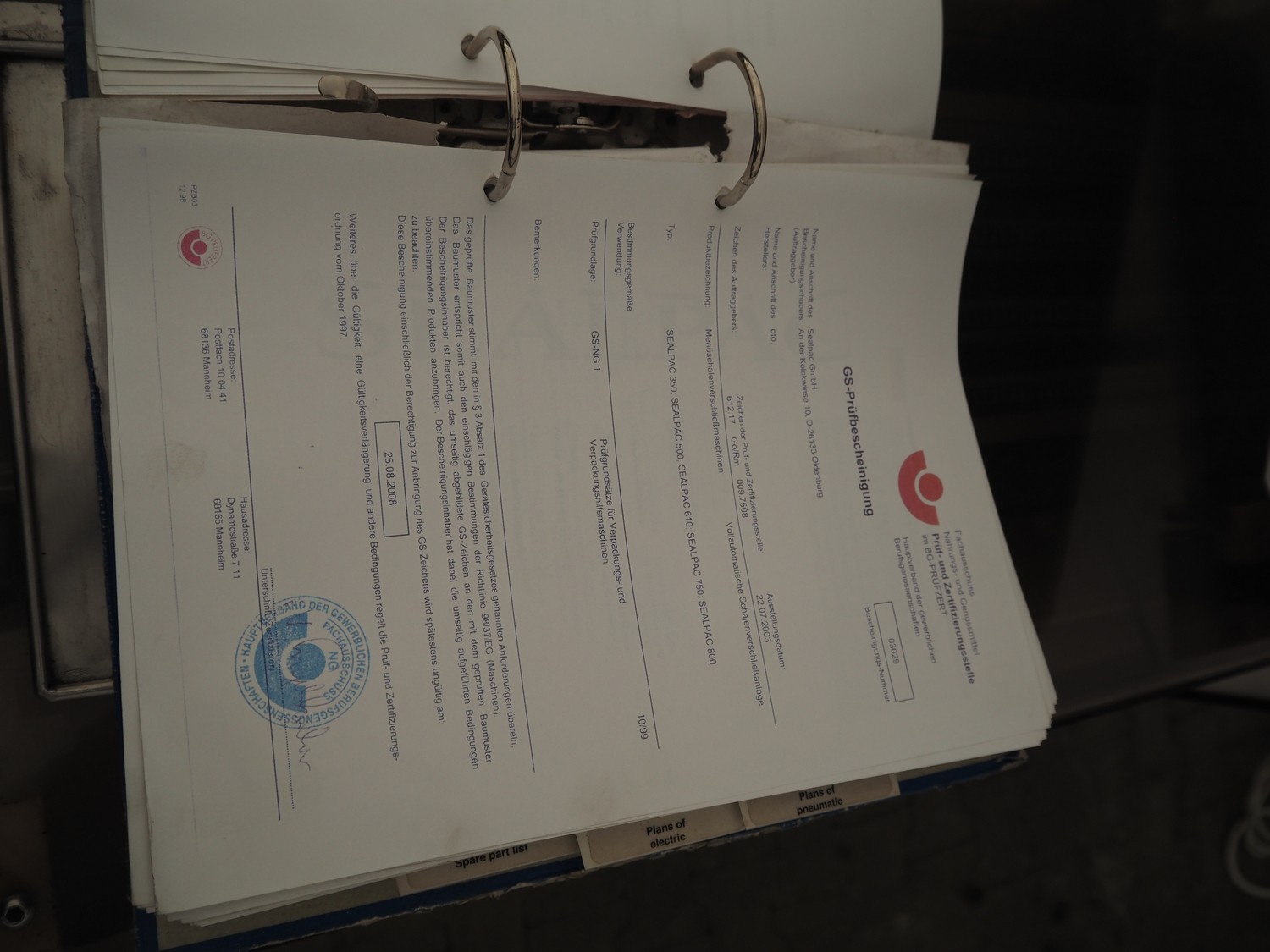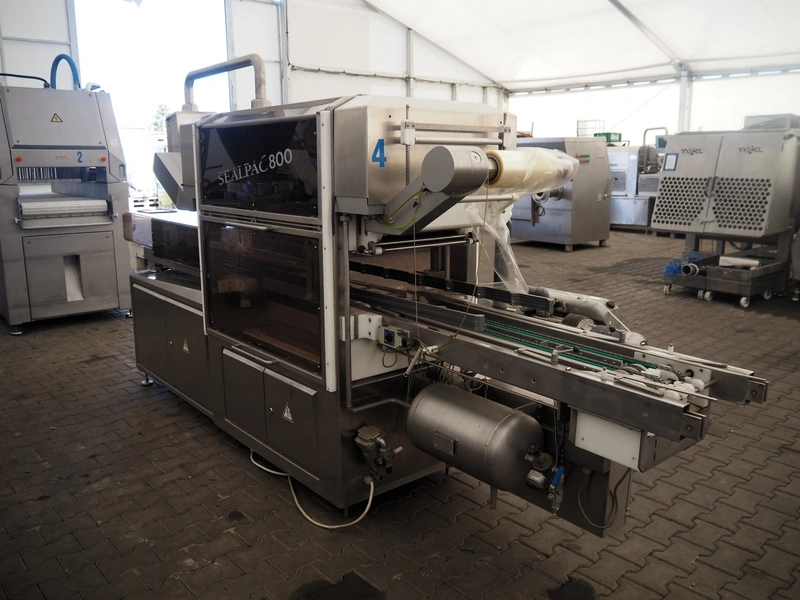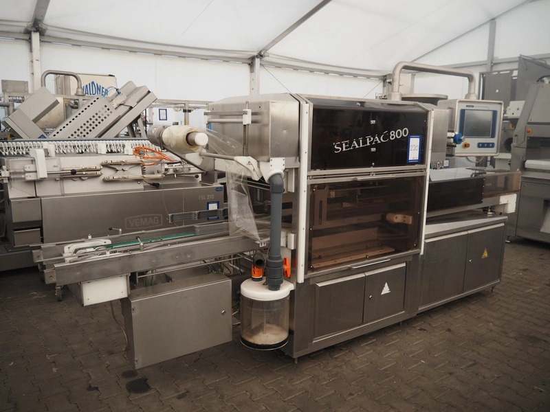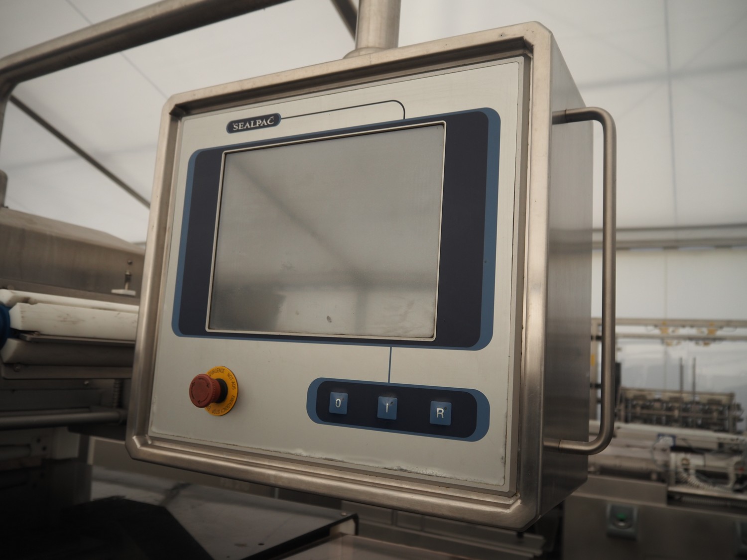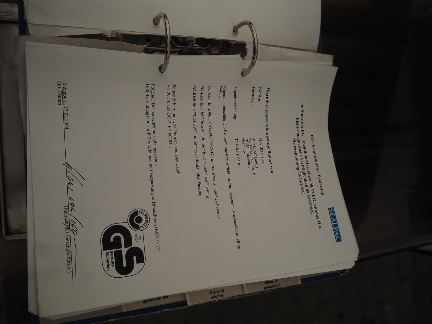 Sealpac traysealer, model: Sealpac 800, serial number: TVG 01 1031 01, year of construction: 2004, 3x400/230 V, 3 Ph, 10 kW, weight: 2000 kg, infeed- and outfeed wire belt, belt width: (2x) 220 mm, dye dimensions: (4x) 220 mm x 160 mm, total dimensions: 8500 mm x 900 mm x 2000 mm. Including pallet with parts and Busch vacuum pump, type: 250-132, serial number: 49167, capacity: 250 m³ per hour, dimensions dye: (3x) 288 mm x 220 mm.