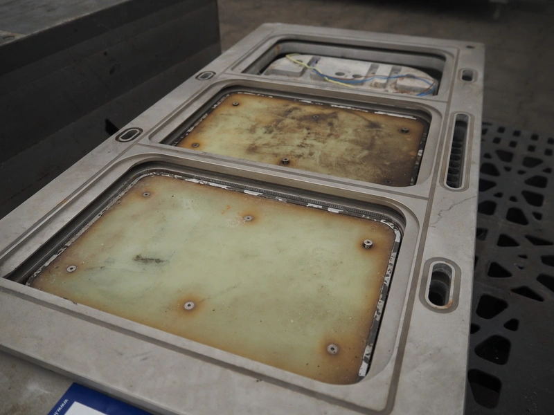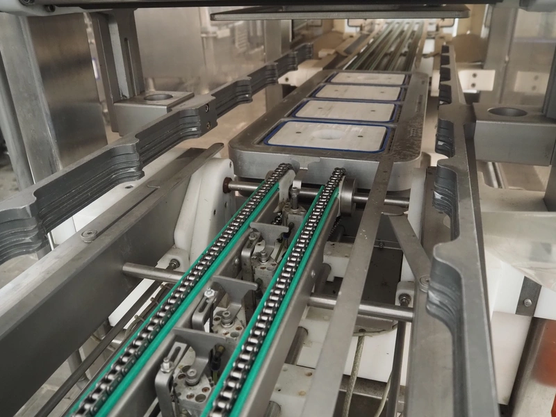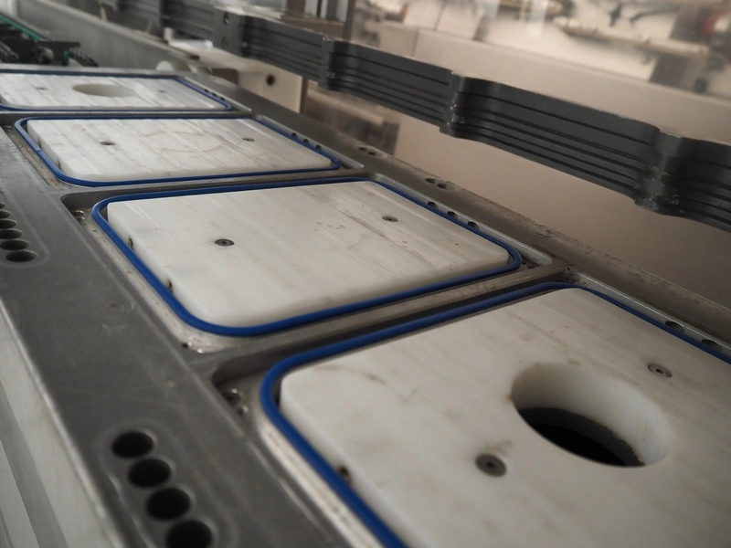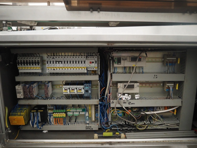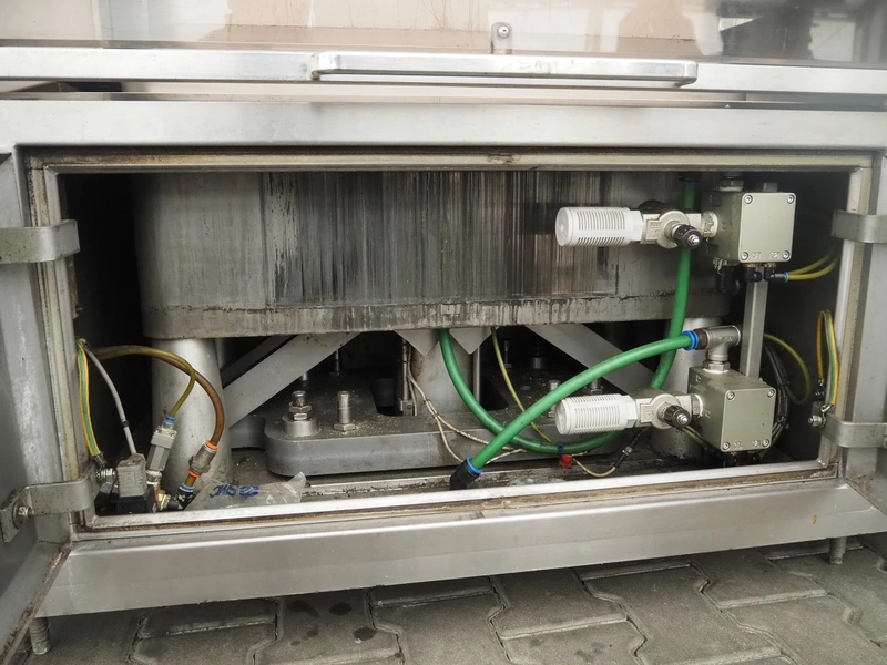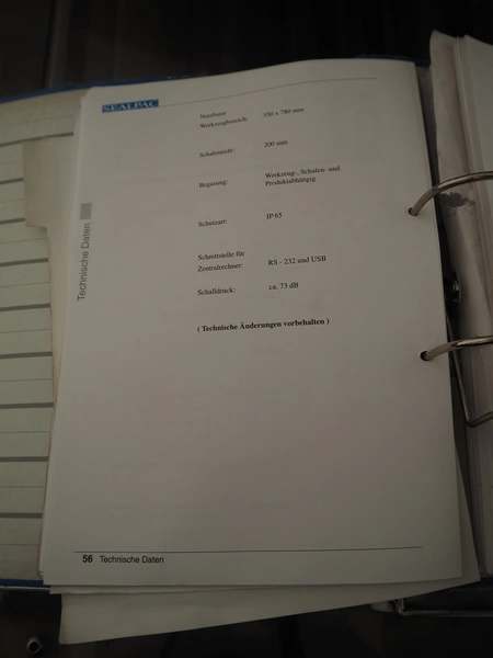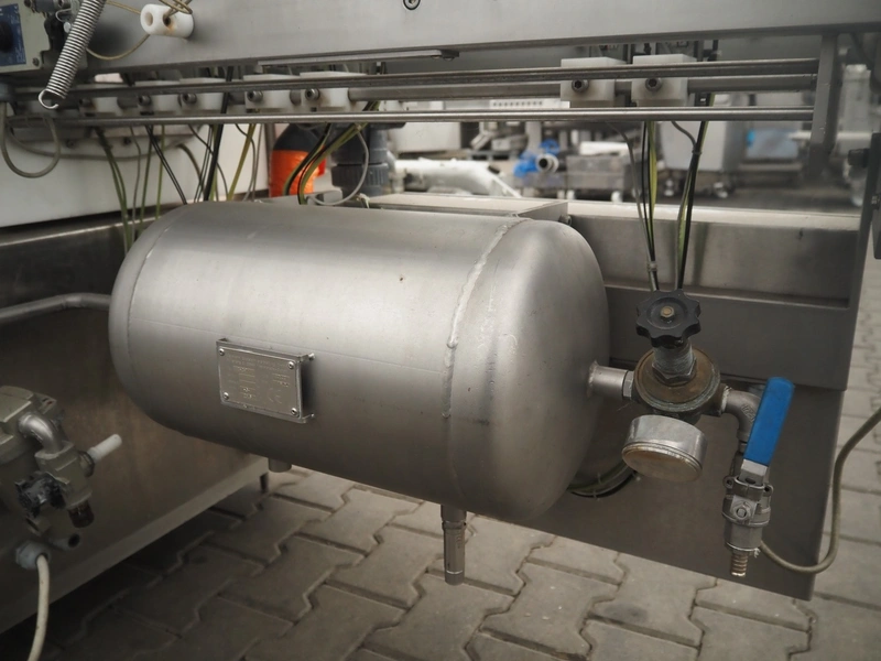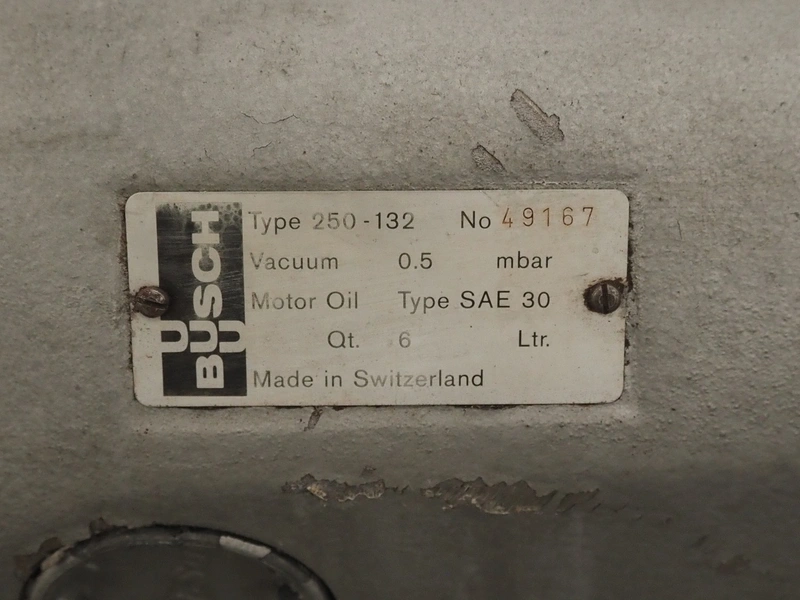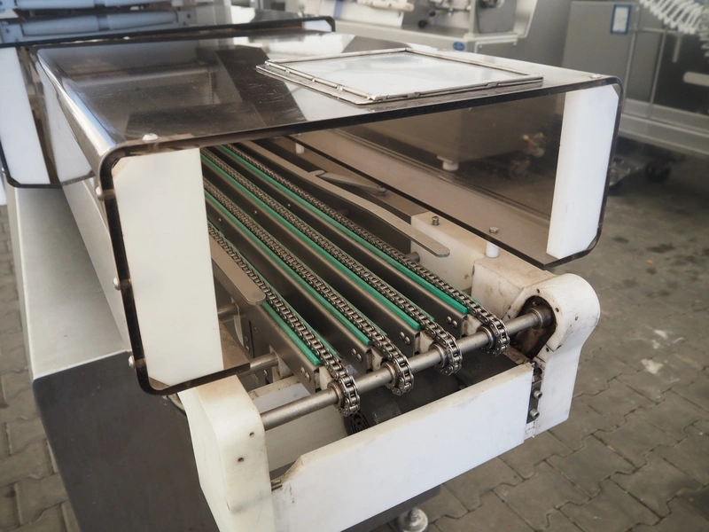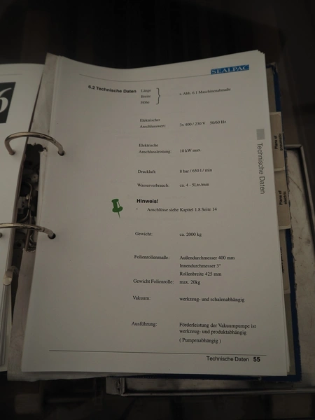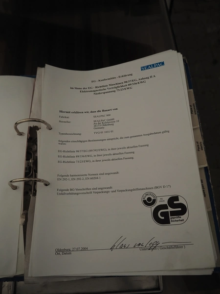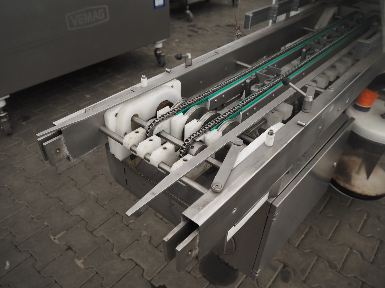 Sealpac traysealer, model: Sealpac 800, serial number: TVG 01 1031 01, year of construction: 2004, 3x400/230 V, 3 Ph, 10 kW, weight: 2000 kg, infeed- and outfeed wire belt, belt width: (2x) 220 mm, dye dimensions: (4x) 220 mm x 160 mm, total dimensions: 8500 mm x 900 mm x 2000 mm. Including pallet with parts and Busch vacuum pump, type: 250-132, serial number: 49167, capacity: 250 m³ per hour, dimensions dye: (3x) 288 mm x 220 mm.