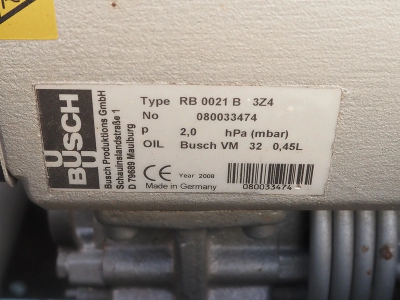 Henkelman mobile traysealer, type: Vortex, machine number: V1004008, year of construction: 2010, 400 V, 3 Ph, 50 Hz, 6 A, 4 kW, dimensions dye: (2x) 160 mm x 210 mm, with Busch vacuum pump, type: RB 0021 B 3Z4, year of construction: 2008, capacity: 21 m³ per hour, total dimensions: 630 mm x 900 mm x 1500 mm. With extra dye, dimensions: (6x) 100 mm x 80 mm.