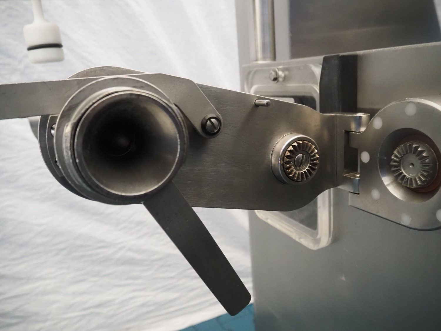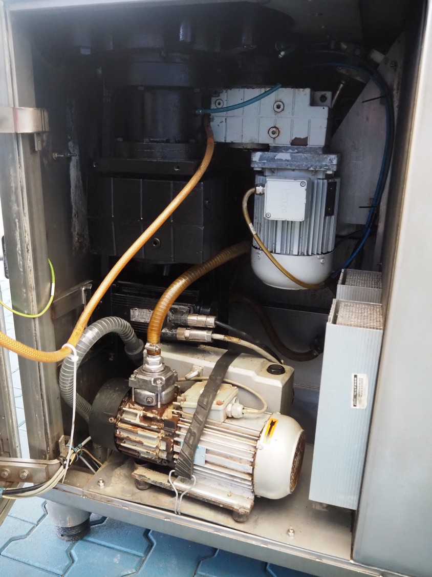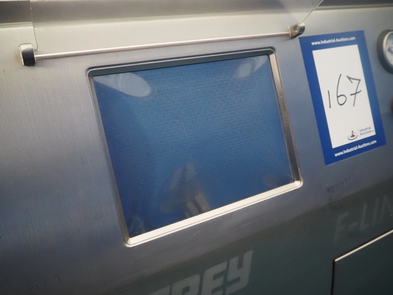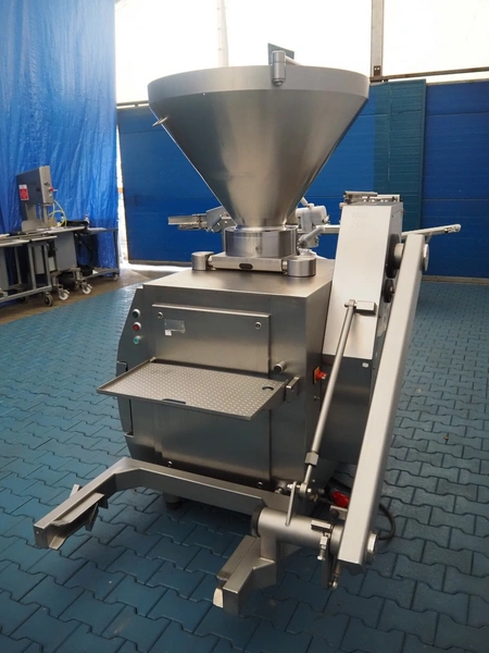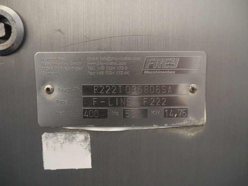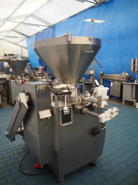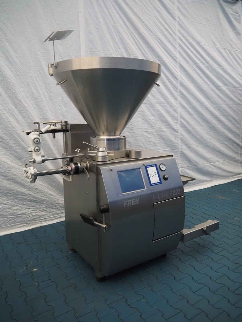 Frey Maschinenbau vacuum filling machine with casing spooler and linking attachment, type: F-LINE F222, machine number: F222T036806SA, year of construction: 2019, 400 V, 50 Hz, 14.75 kW, dimensions: 2000 mm x 1200 mm x 2200 mm.
