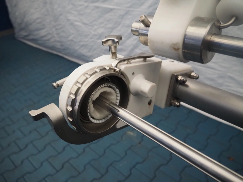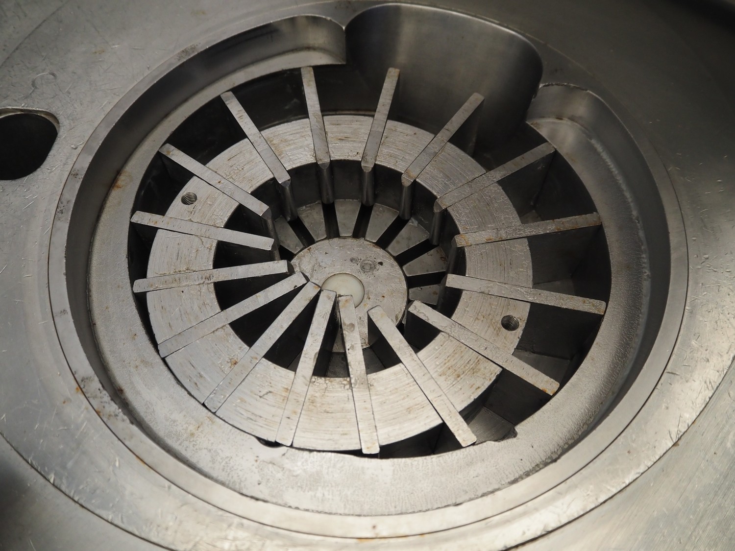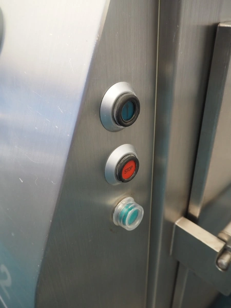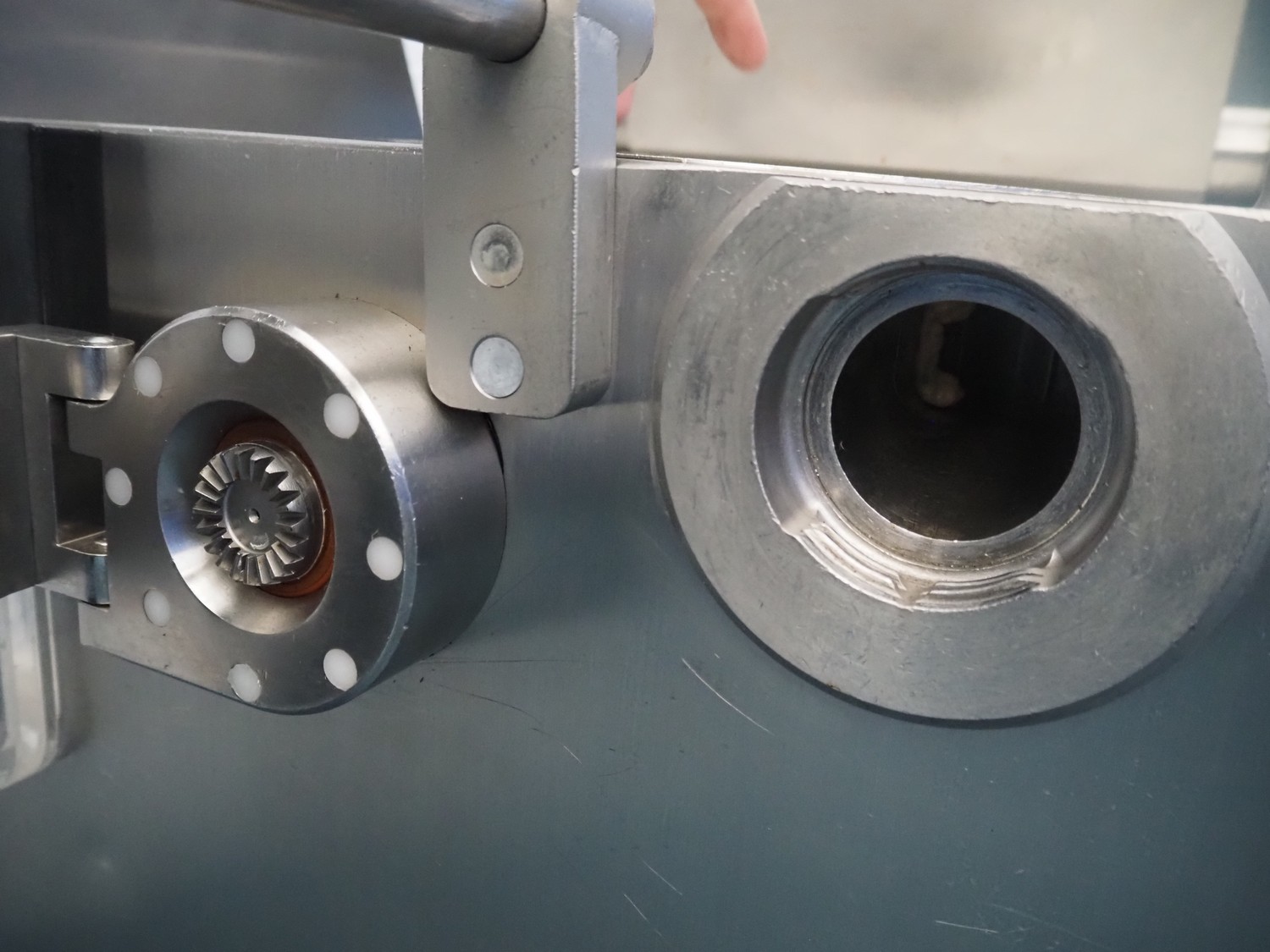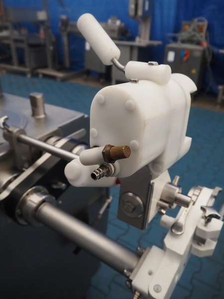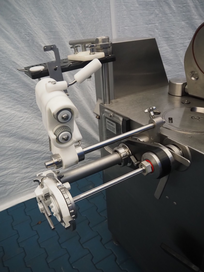 Frey Maschinenbau vacuum filling machine with casing spooler and linking attachment, type: F-LINE F222, machine number: F222T036806SA, year of construction: 2019, 400 V, 50 Hz, 14.75 kW, dimensions: 2000 mm x 1200 mm x 2200 mm.