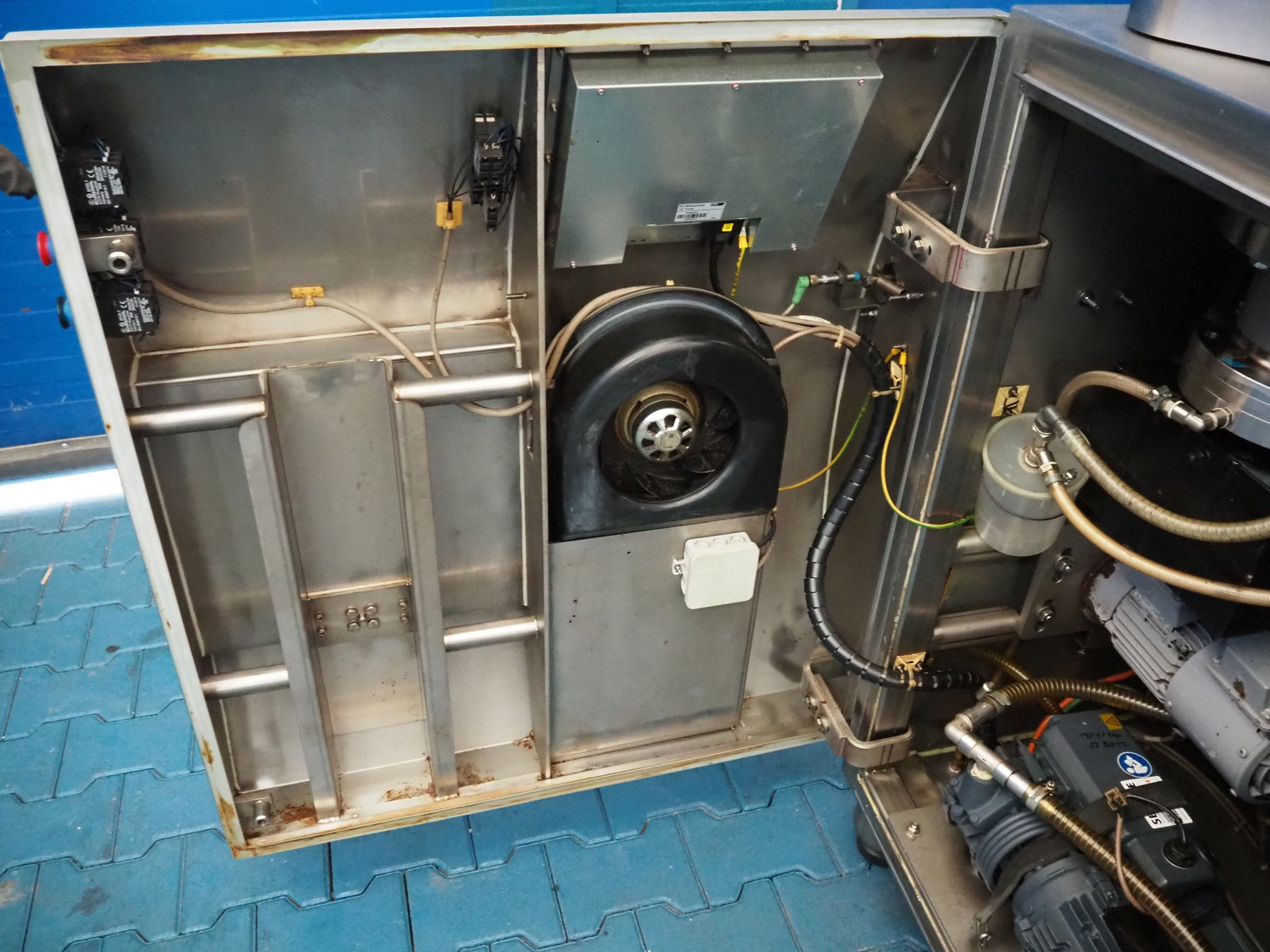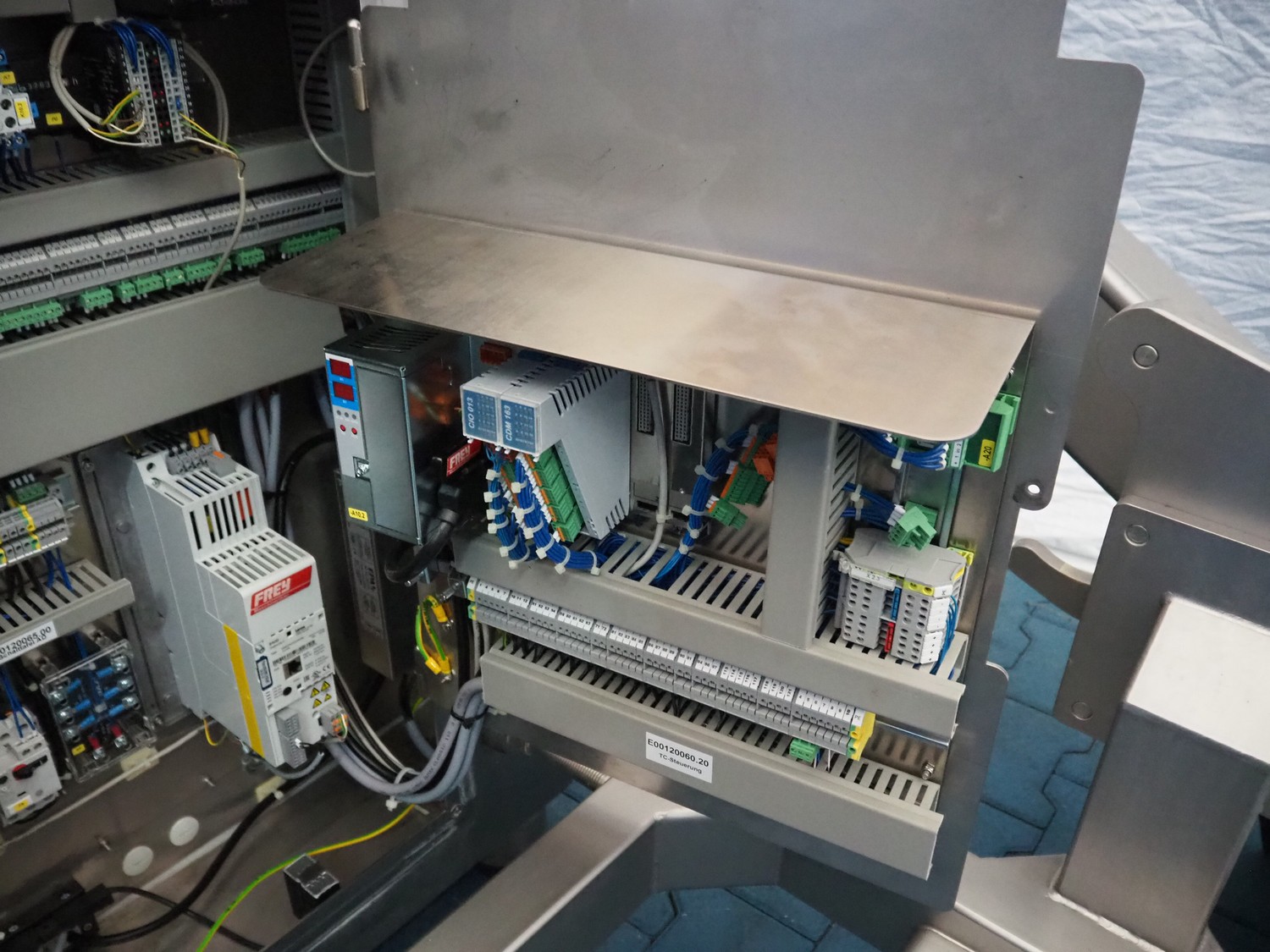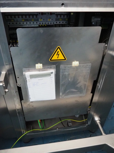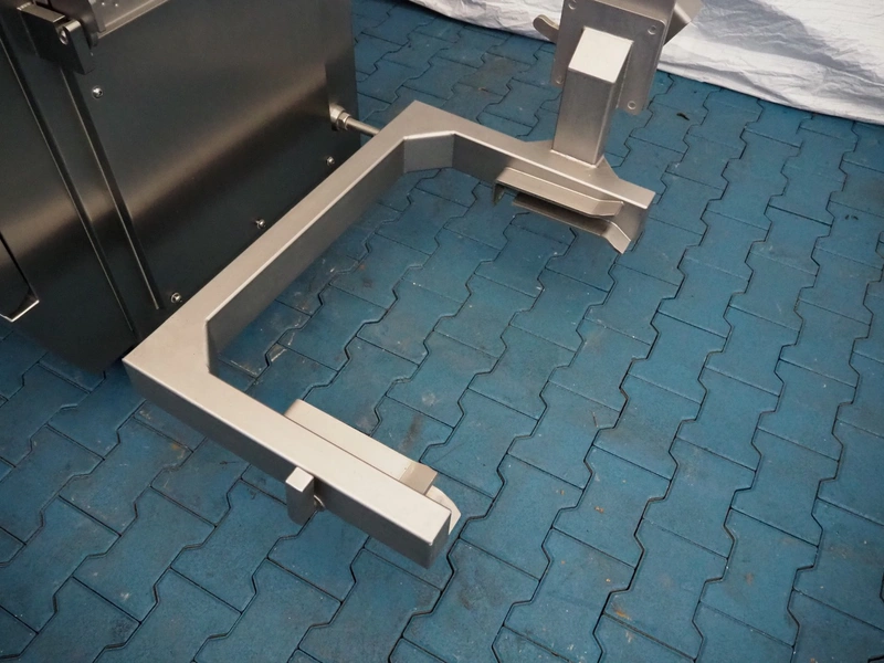Frey Maschinenbau GmbH vacuum filling machine with lifter for 200 liter meat bins, type: F-LINE F222, machine number: F222T1074179, year of construction: 2019, 400 V, 50/60 Hz, 11.10 kW, dimensions: 2000 mm x 1340 mm x 1980 mm. Including crate with parts.