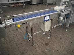 Mobile transport belt with roller conveyor, s/s frame, plastic belt, belt width: 615 mm, s/s rollers, roller width: 590 mm, total d…