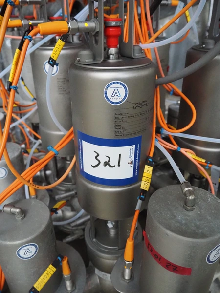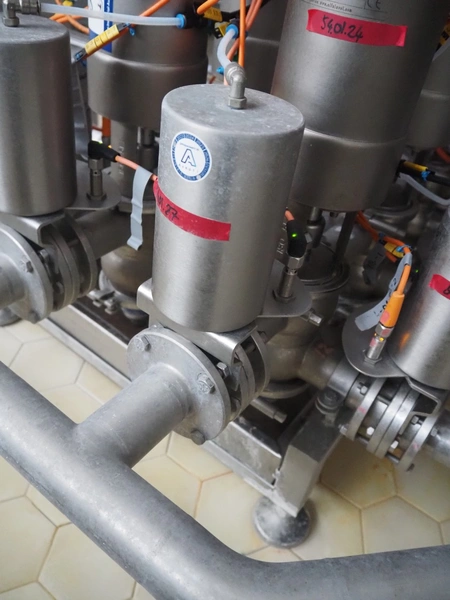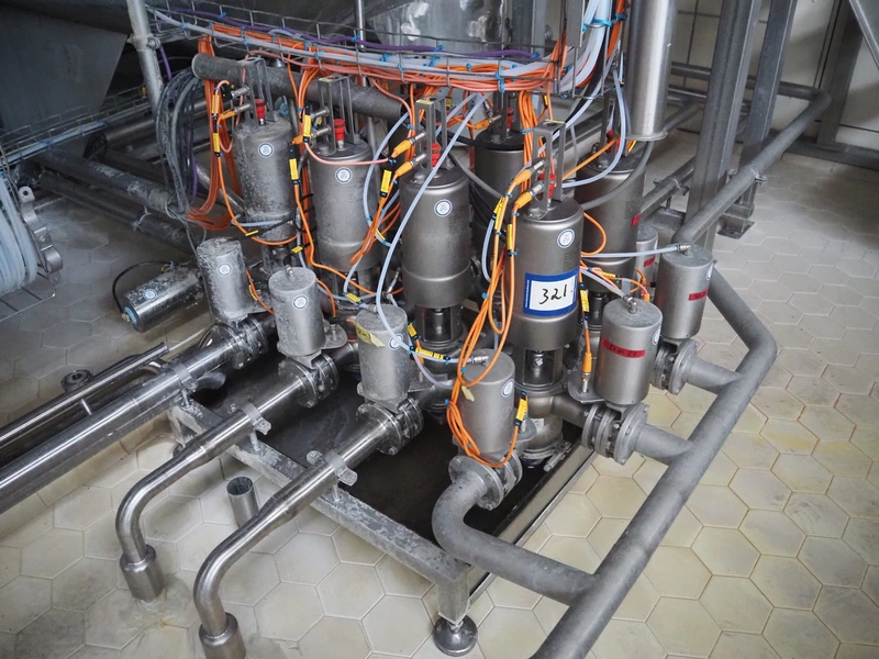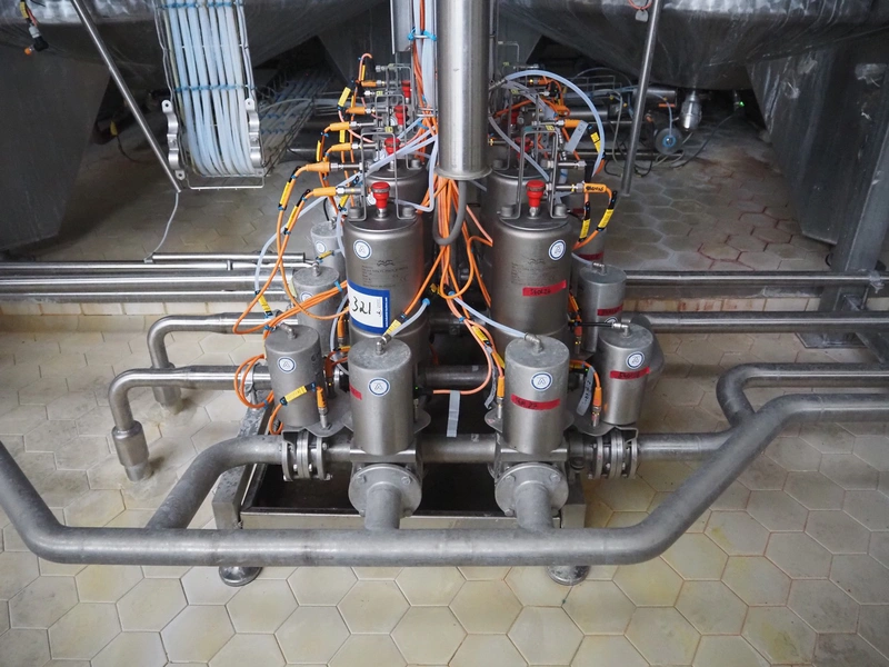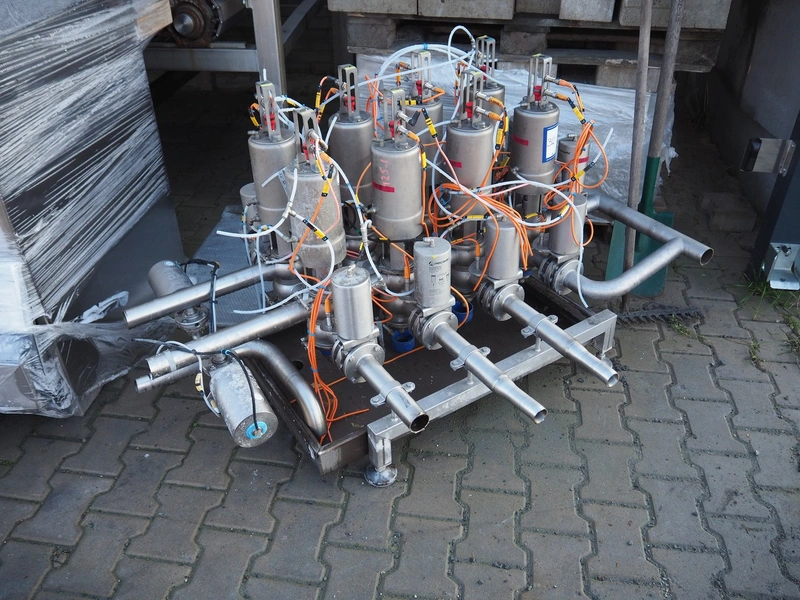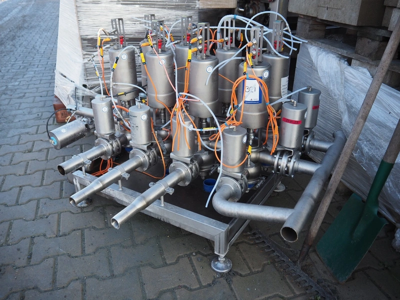 Manifold with approximately 20 Alfa Laval and Nocado valves, dimensions: 1300 mm x 800 mm x 850 mm.