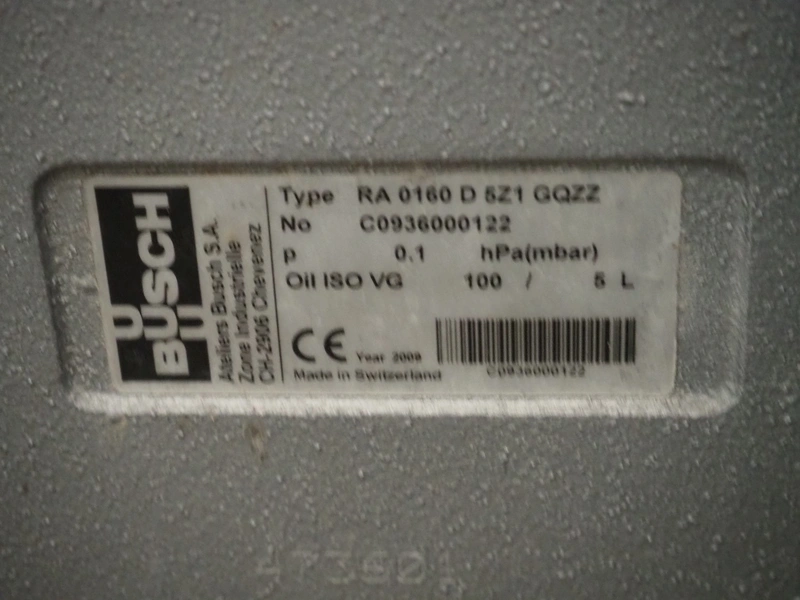 Busch vacuum pump, type: RA 0160 D 5Z1 GQZZ, serial number: C0936000122, year of construction: 2009, capacity: 160 m³ per hour, dimensions: 870 mm x 520 mm x 450 mm.