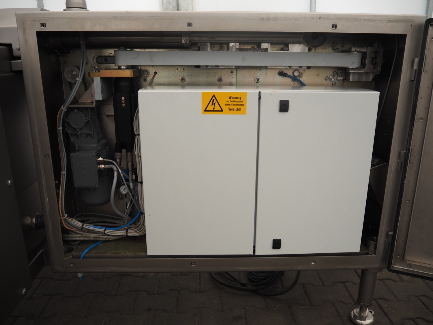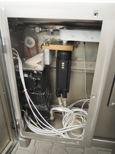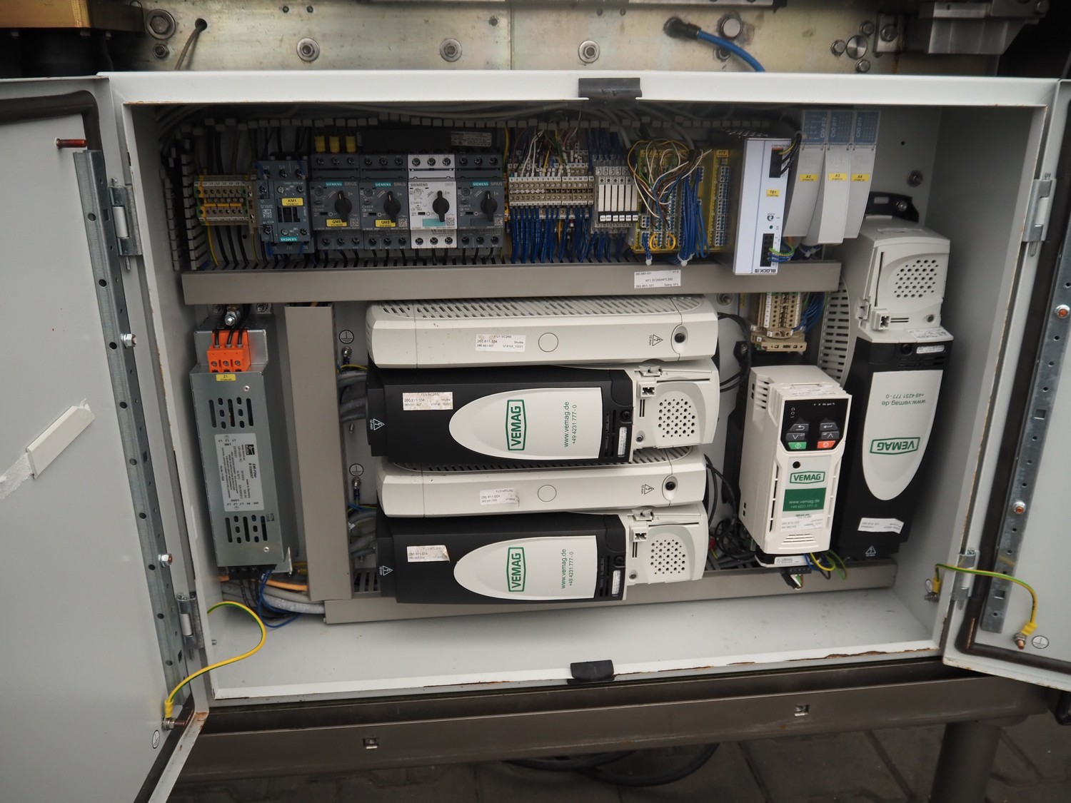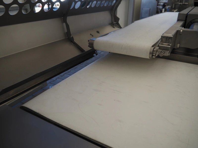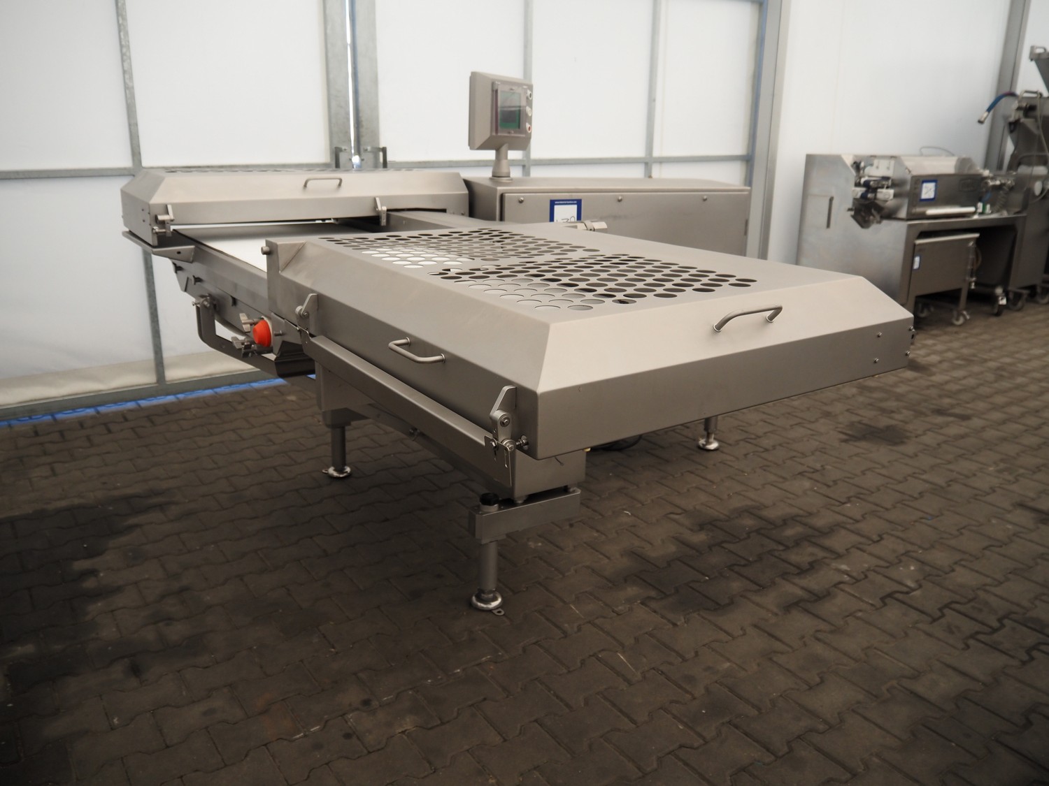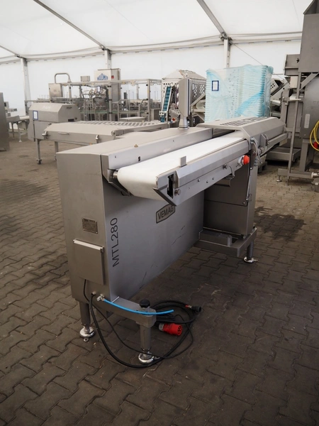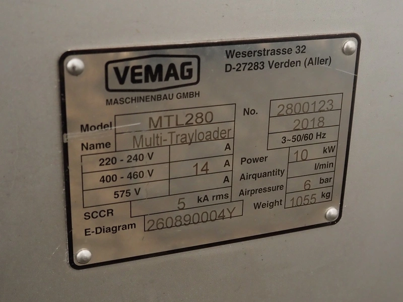 Vemag multi-tray loader with shuttle conveyor, model: MTL280, number: 2800123, year of construction: 2018, 220/575 V, 3 Ph, 50/60 Hz, 14 A, 10 kW, plastic belts, belt width: 590 mm and 230 mm, total dimensions: 2600 mm x 2500 mm x 1650 mm.