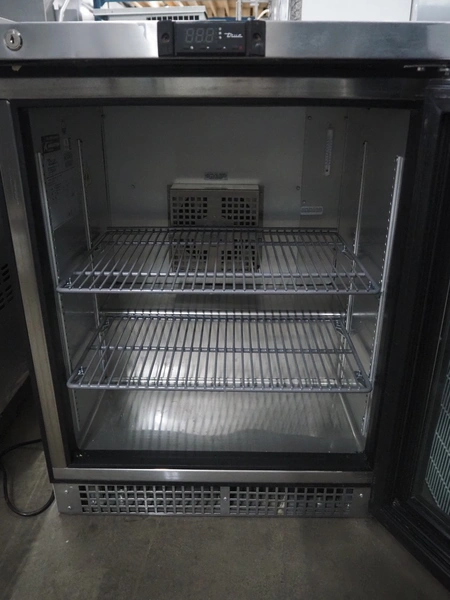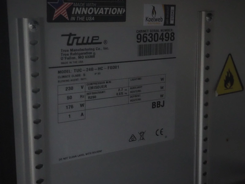 True refrigerator, model: TUC-24G-HC-FGD01, serial number: 9630498, 230 V, 50 Hz, 1 A, 176 W, 2 floors, floor dimensions: (2x) 510 mm x 360 mm, total dimensions: 610 mm x 640 mm x 810 mm.