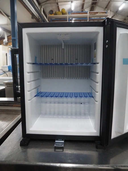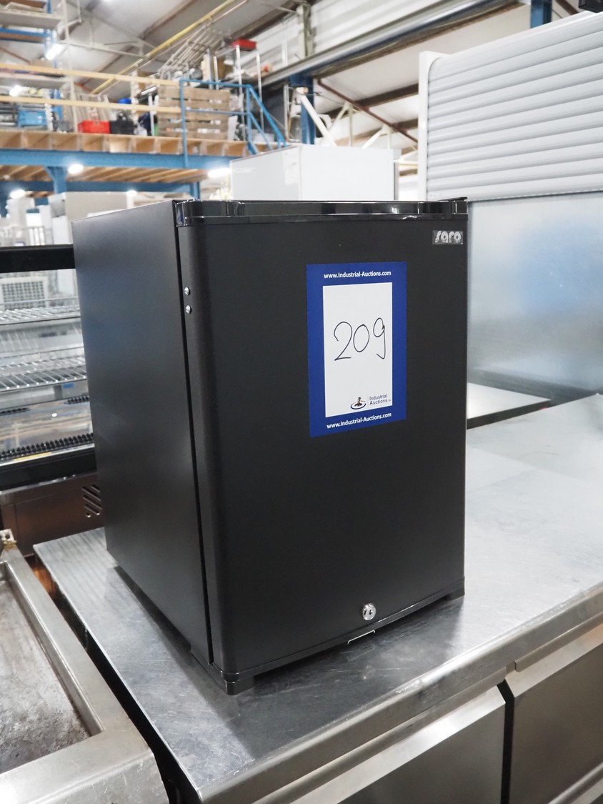 Saro Gastro-Products GmbH minibar, model: MB40, serial number: 30123002070036, year of construction: 23/02/07, 220 V-240 V, 50 Hz, volume: 33 liter, weight: 17.5 kg, refrigerant: R717, 2 floors, floor dimensions: (2x) 300 mm x 140 mm, total dimensions: 460 mm x 400 mm x 570 mm.