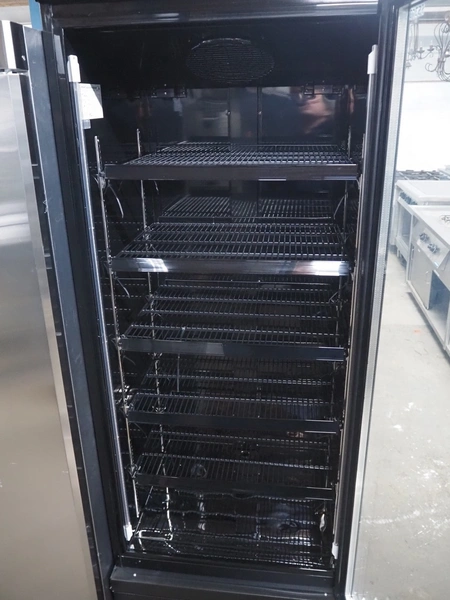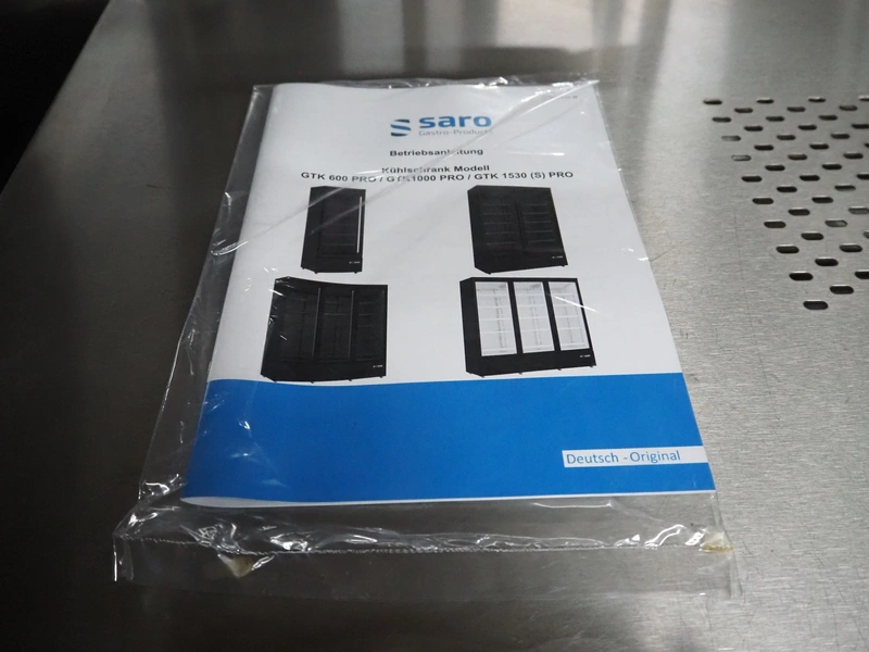 Saro Gastro-Products GmbH refrigerator, model: GTK 600 PRO, year of construction: 04.01.24, 220-240 V, 50 Hz, 2.3 A, 323 W, refrigerant: R290/0.085 kg, weight: 130 kg, capacity: 459 liter, 5 floors, floor dimensions: (5x) 630 mm x 500 mm, total dimensions: 750 mm x 690 mm x 2000 mm.
