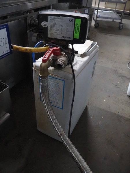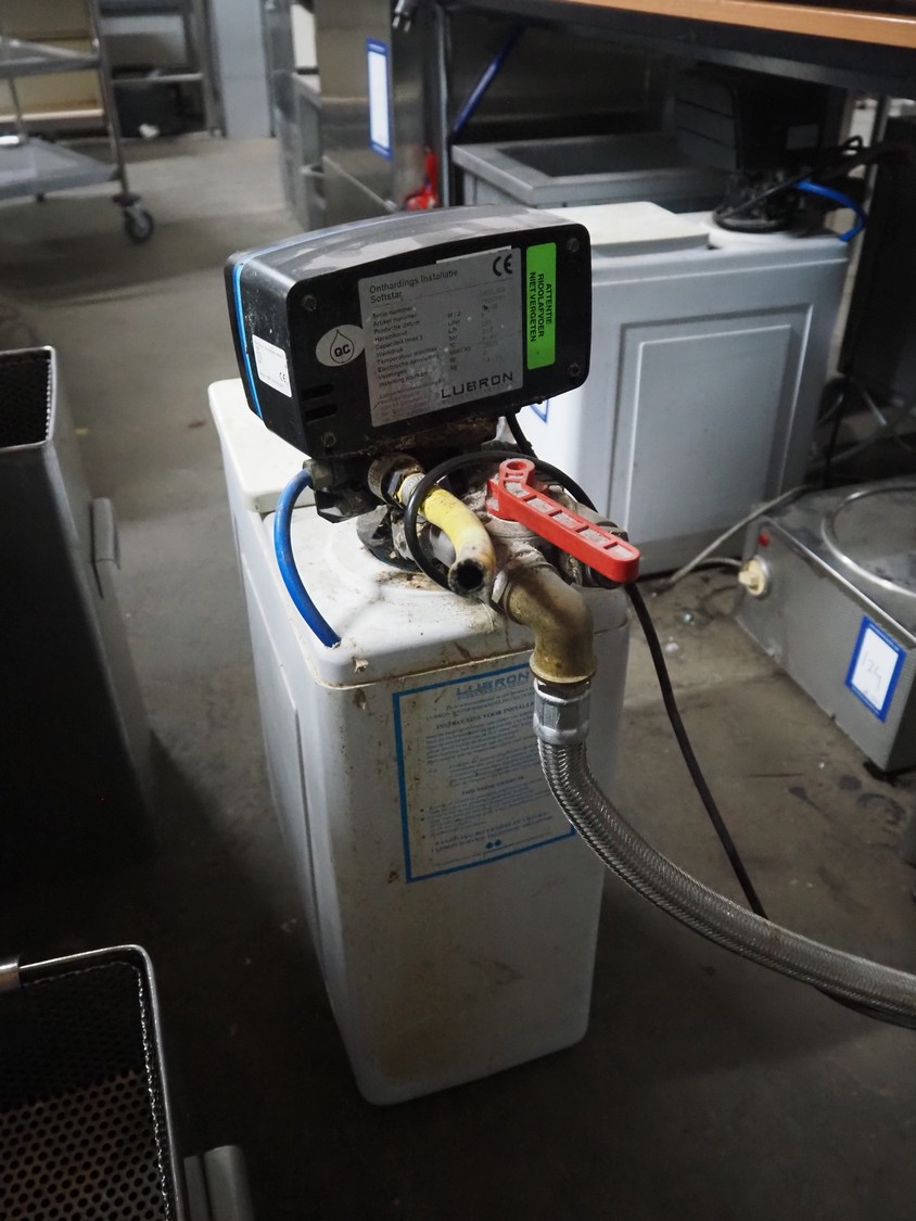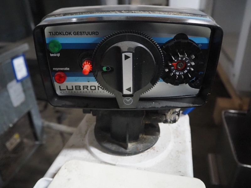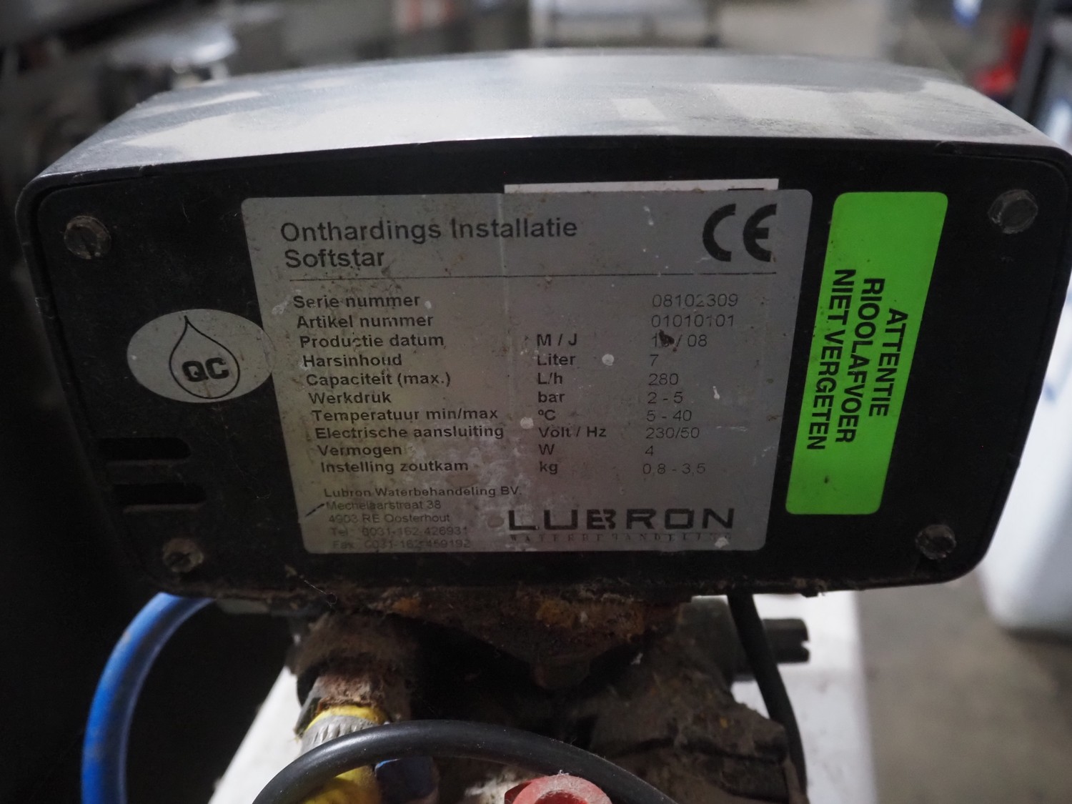 Lubron water softener, serial number: 08102309, year of construction: 10/08, 230 V, 50 Hz, 4 W, pressure: 2.8 bar, capacity: 7 liter, dimensions: 400 mm x 200 mm x 650 mm.