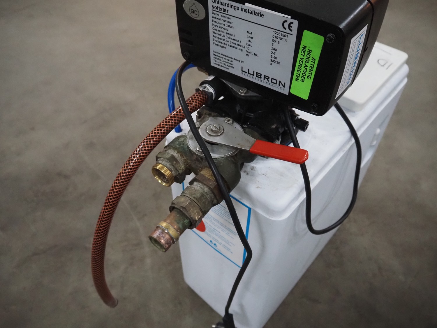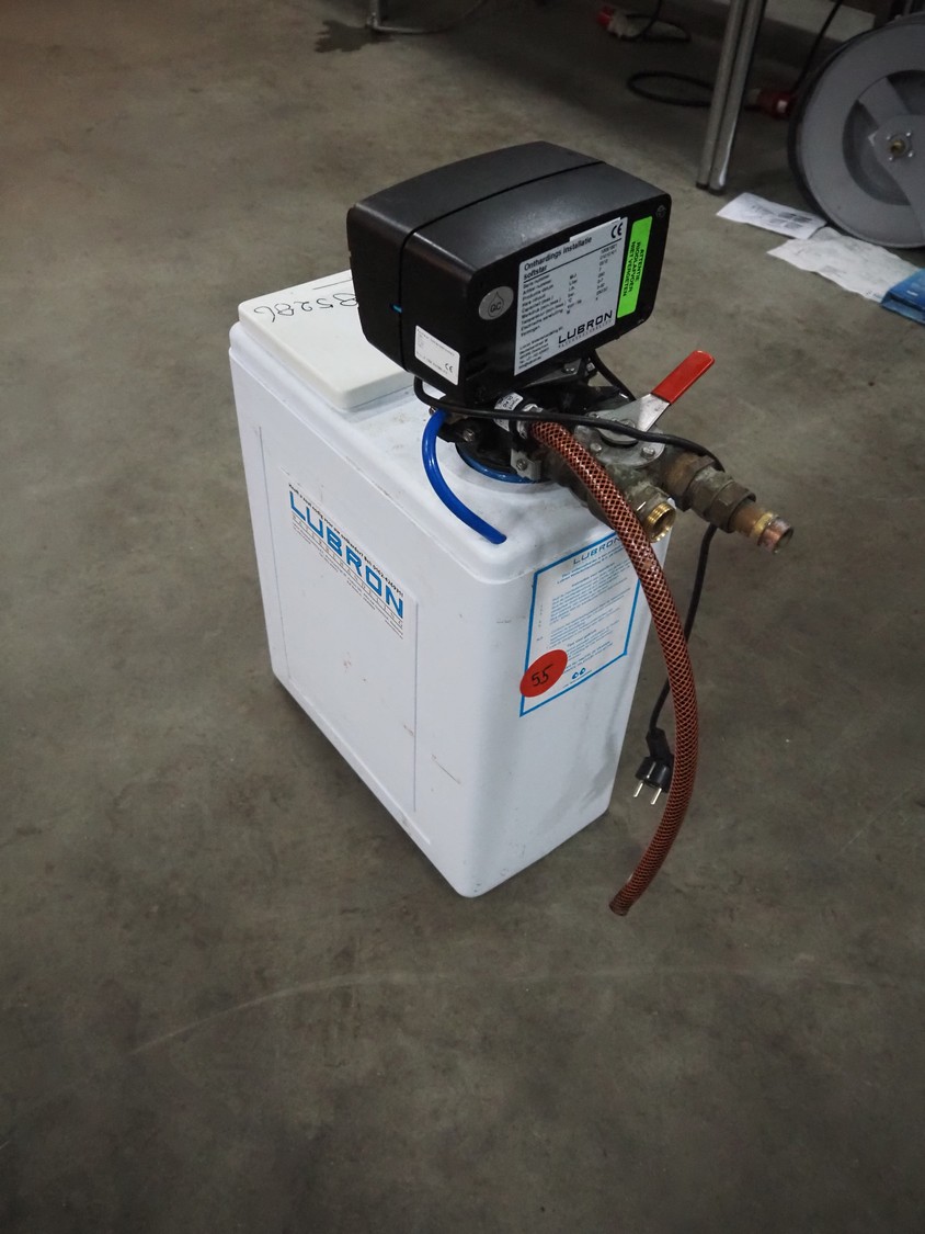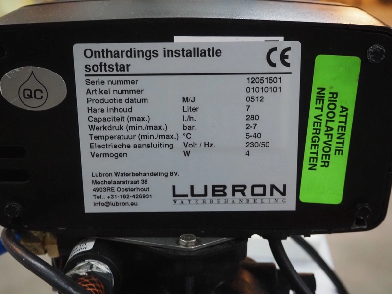Lubron water softener, serial number: 12051501, year of construction: 05/12, 230 V, 50 Hz, 4 W, pressure: 2-7 bar, capacity: 7 liter, dimensions: 400 mm x 200 mm x 650 mm.