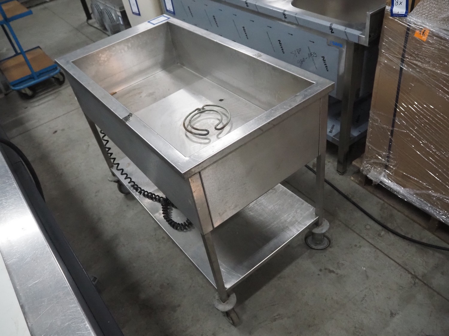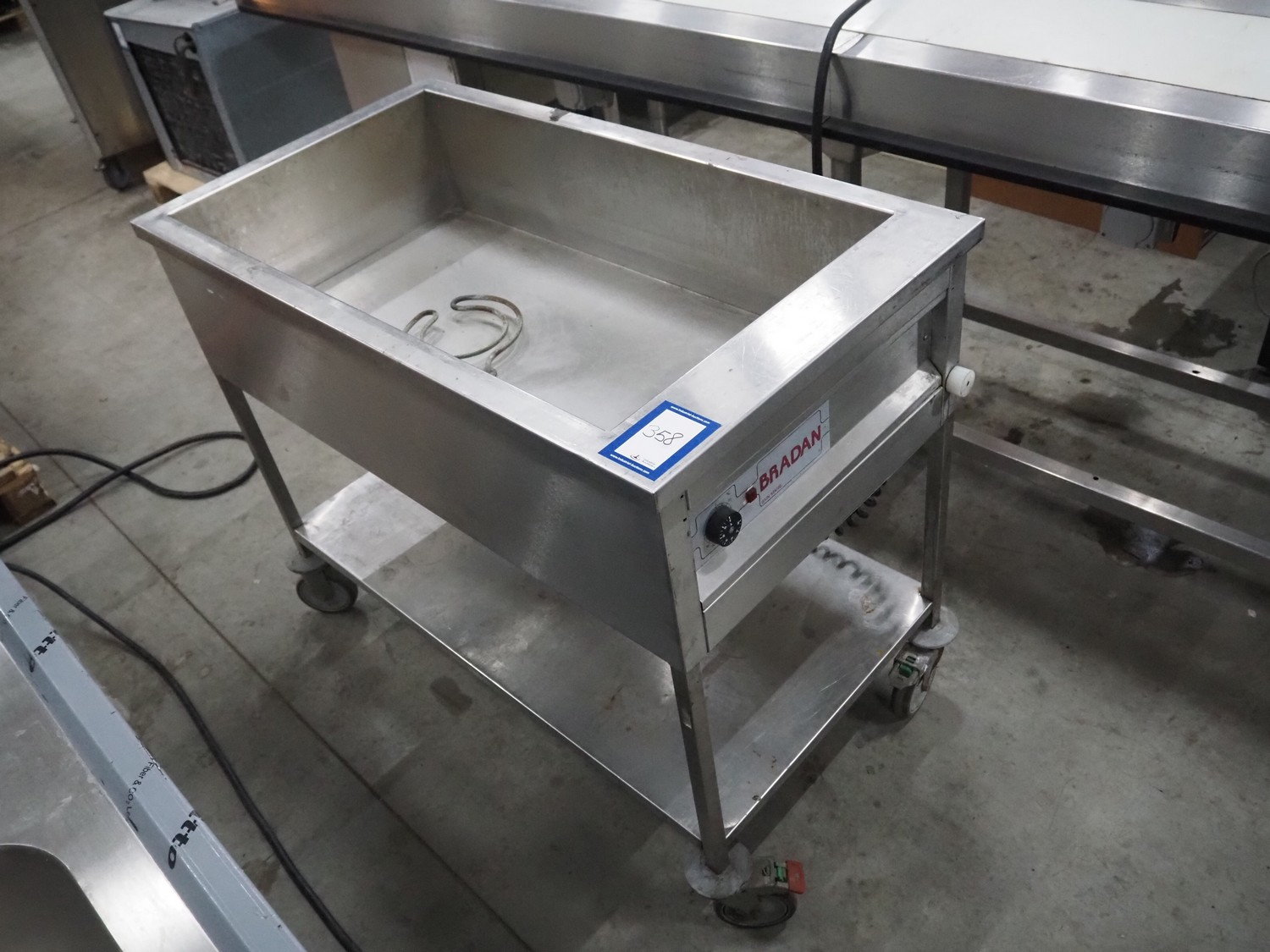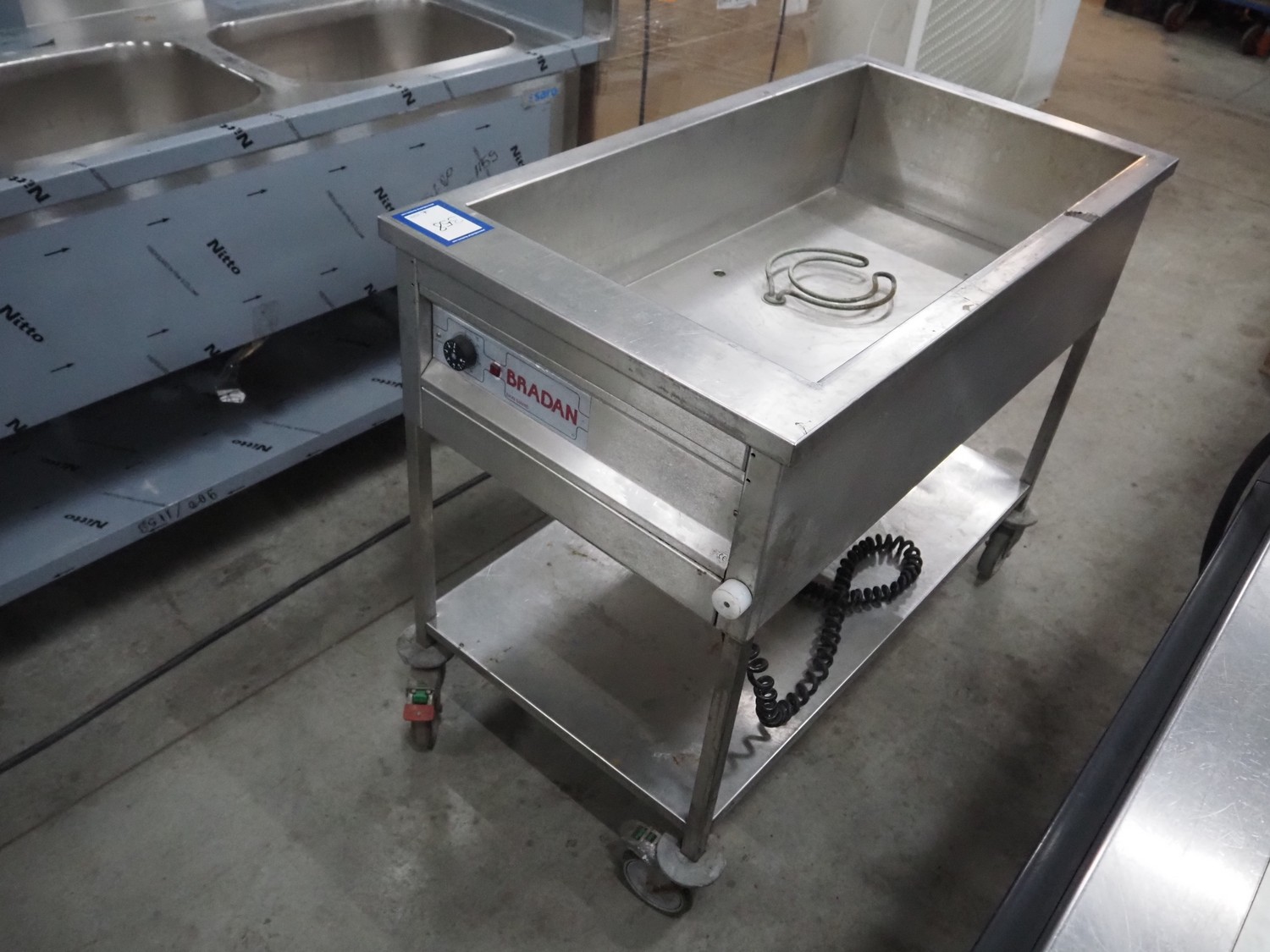 Bradan mobile au bain-marie, inside dimensions: 950 mm x 510 mm x 230 mm, total dimensions: 600 mm x 1100 mm x 910 mm.
