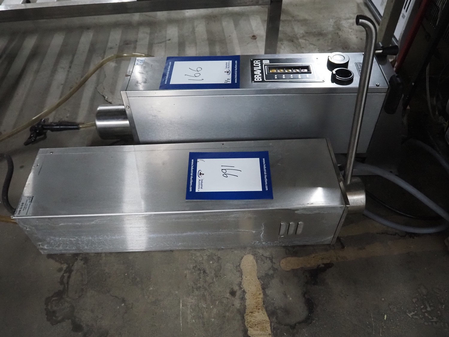 Animo coffee dispenser, type: DWI GL 90, serial number: 20027, 400 V, 3 Ph, 50 Hz, 9800 W, dimensions: 300 mm x 400 mm x 900 mm, Bravilor coffee dispenser, type: 8.321.801.100, 380 V, 3 Ph, 50/60 Hz, 6000 W, dimensions: 300 mm x 400 mm x 900 mm.