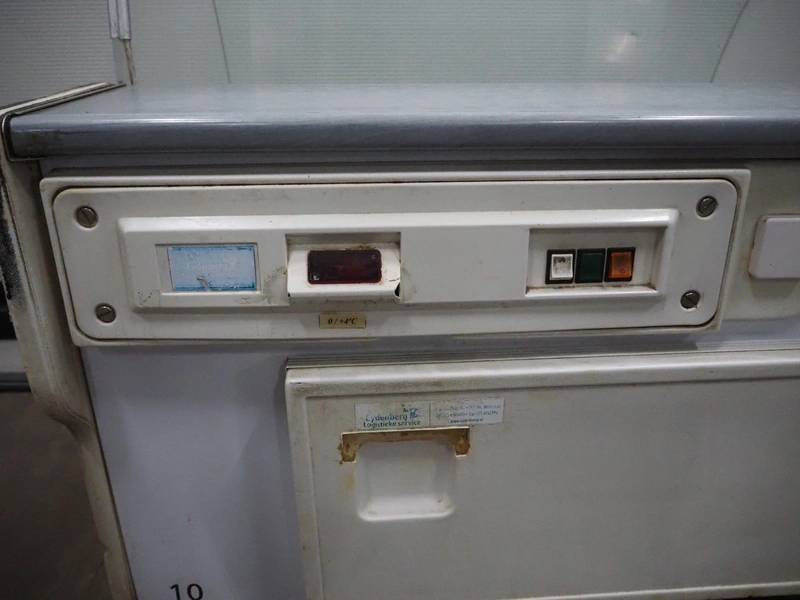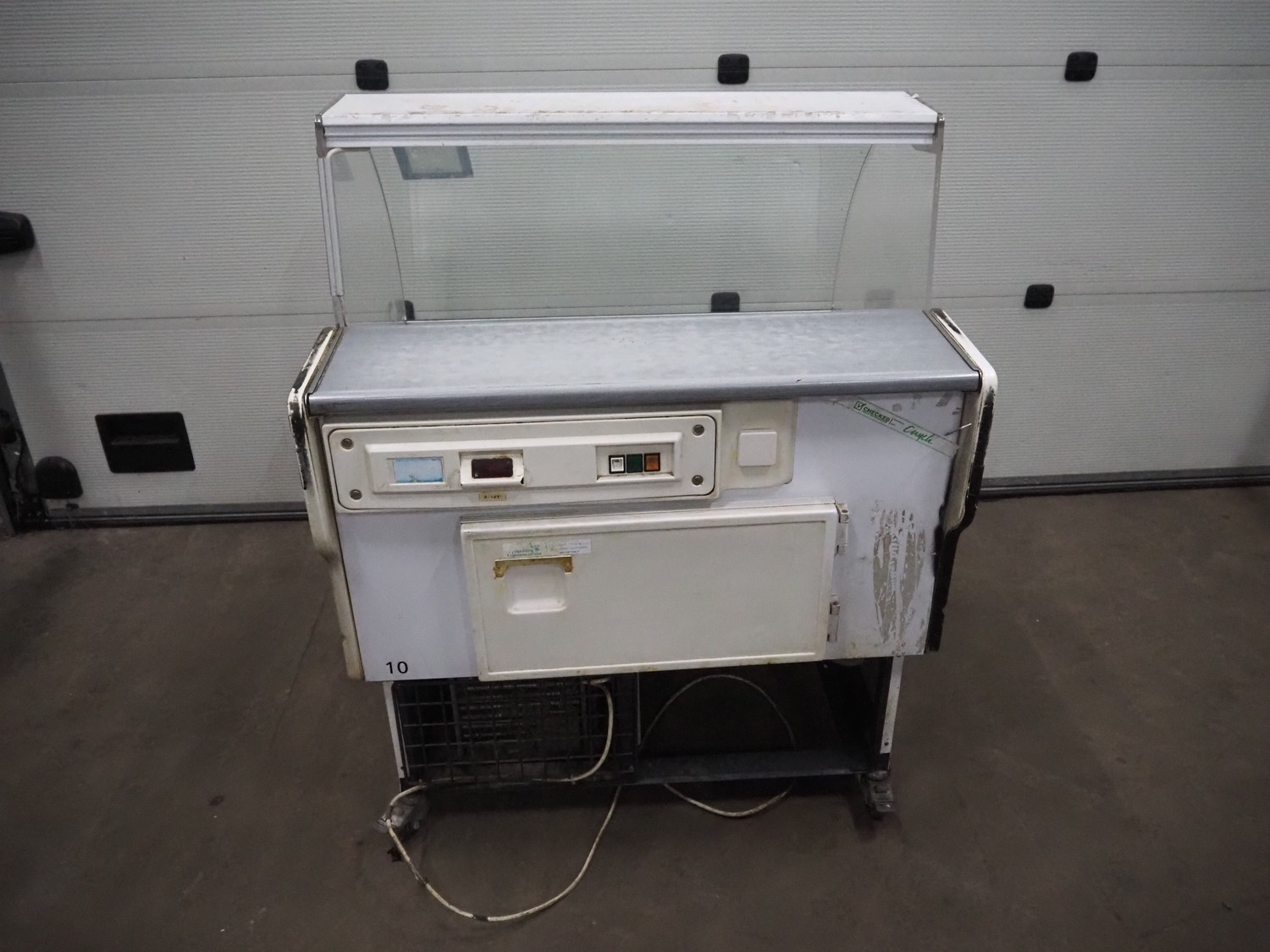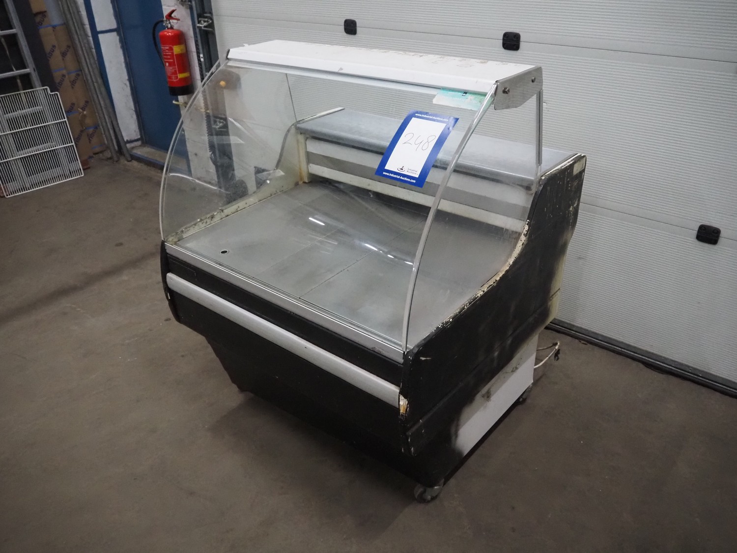 Refrigerated showcase, inside dimensions: 1000 mm x 620 mm x 510 mm, total dimensions: 1060 mm x 940 mm x 1310 mm.