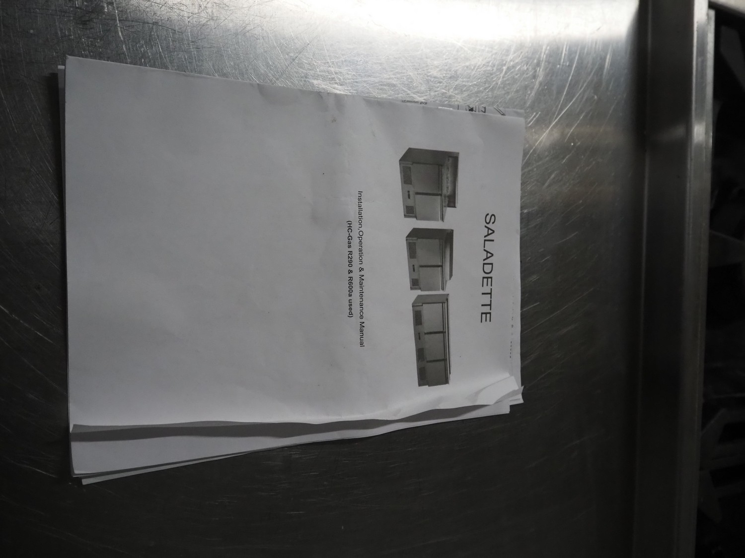 Saladette, model: ES 900G, serial number: 708032131, dimensions: 900 mm x 700 mm x 1280 mm.