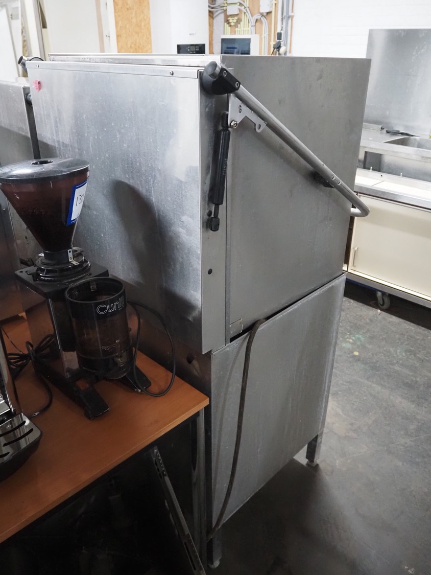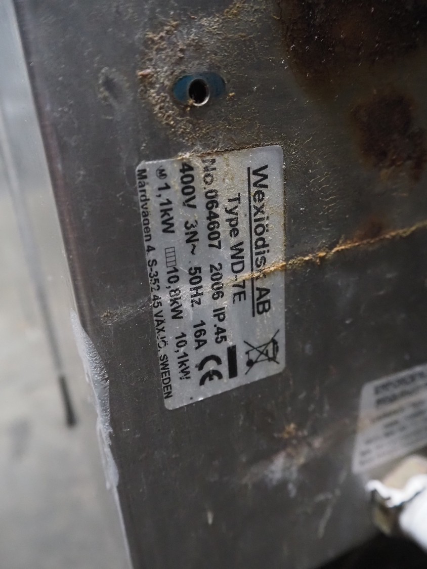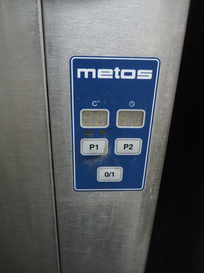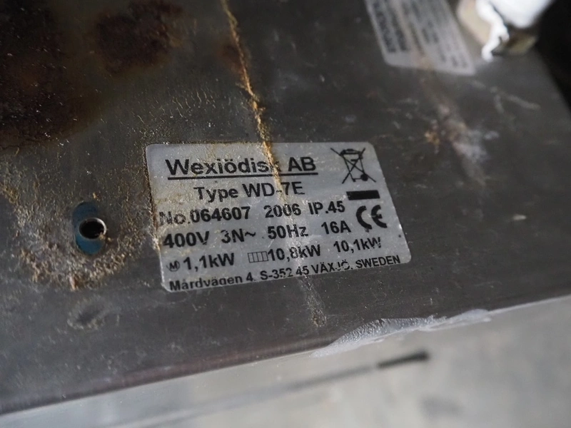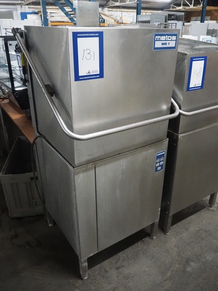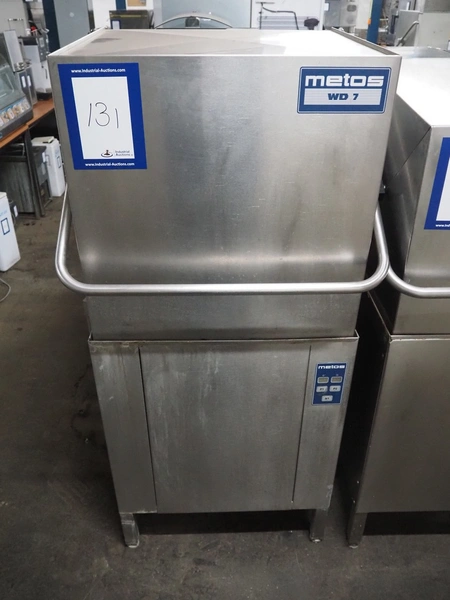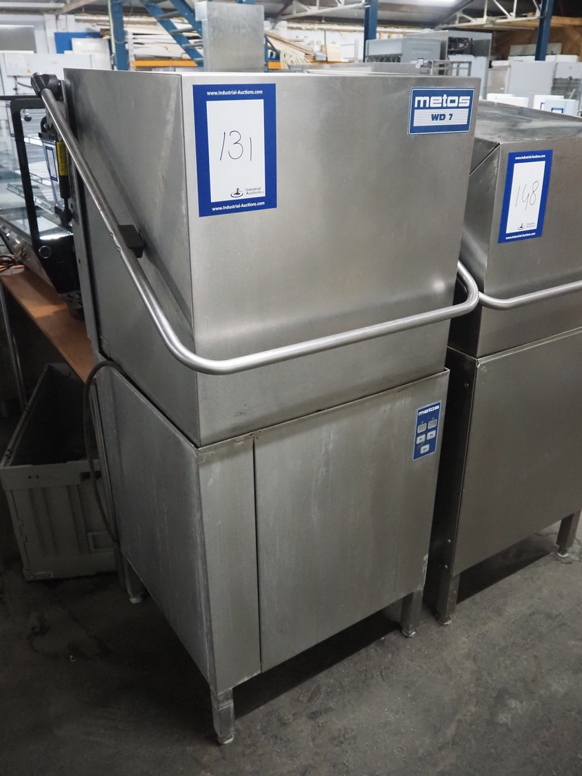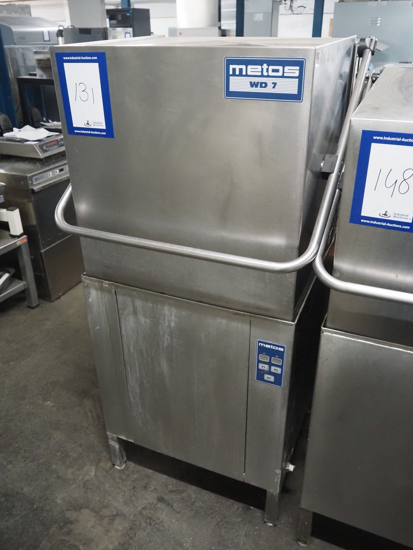 Metos dishwasher, type: WD-7E, number: 064607, year of construction: 2006, 400 V, 3 Ph, 50 Hz, 16 A, 10.1 kW, dimensions: 740 mm x 700 mm x 1500 mm. Including 2 plastic baskets.