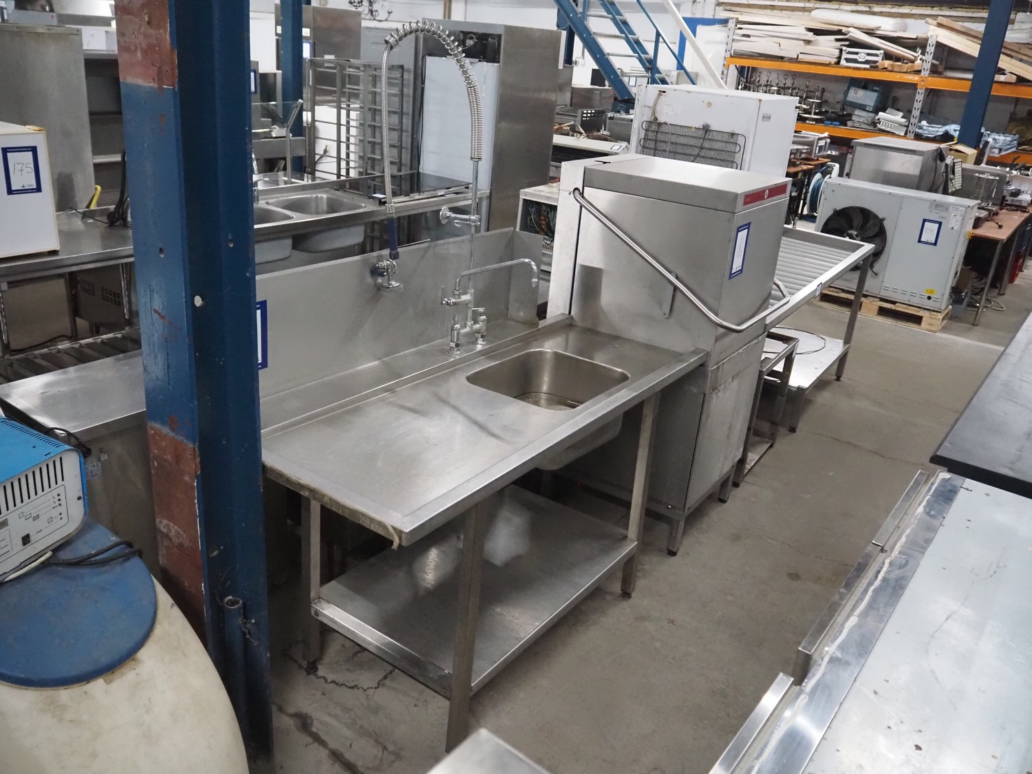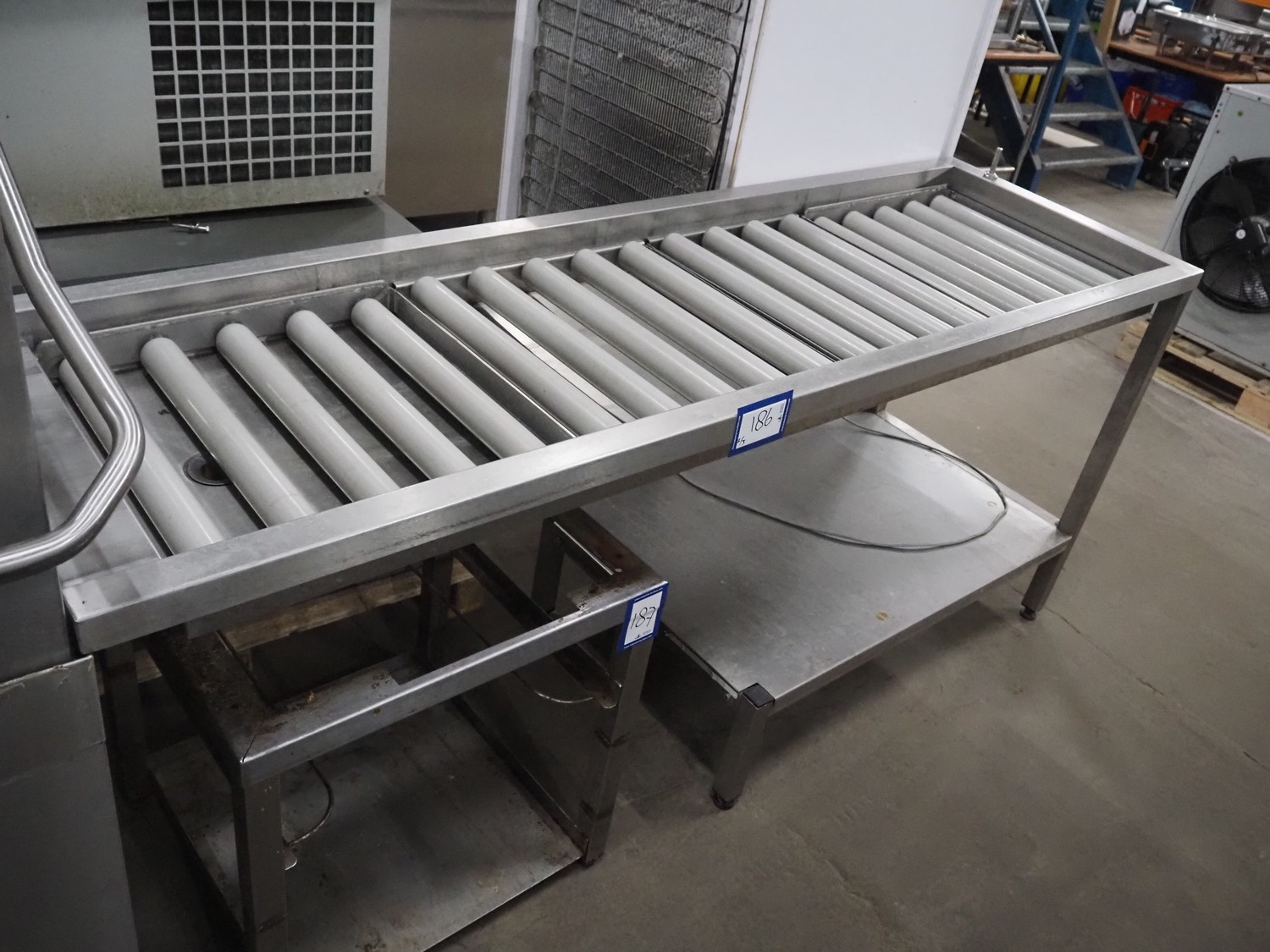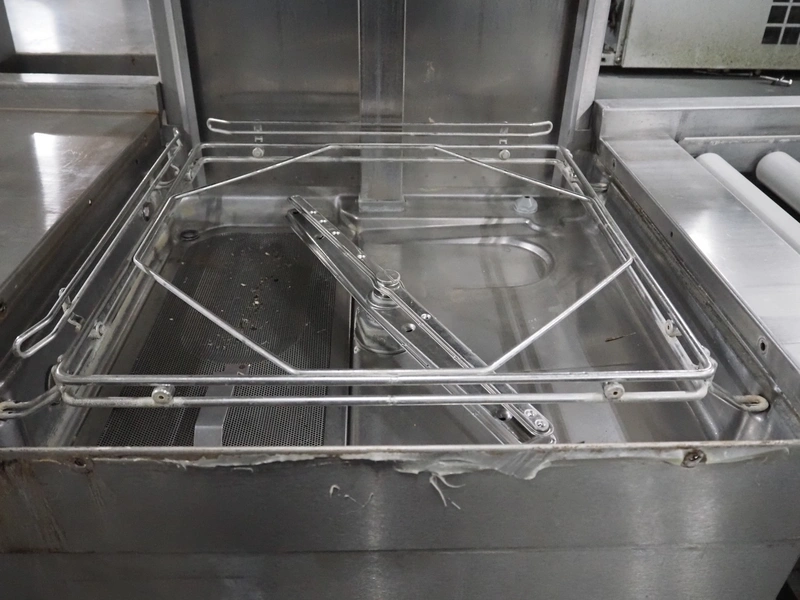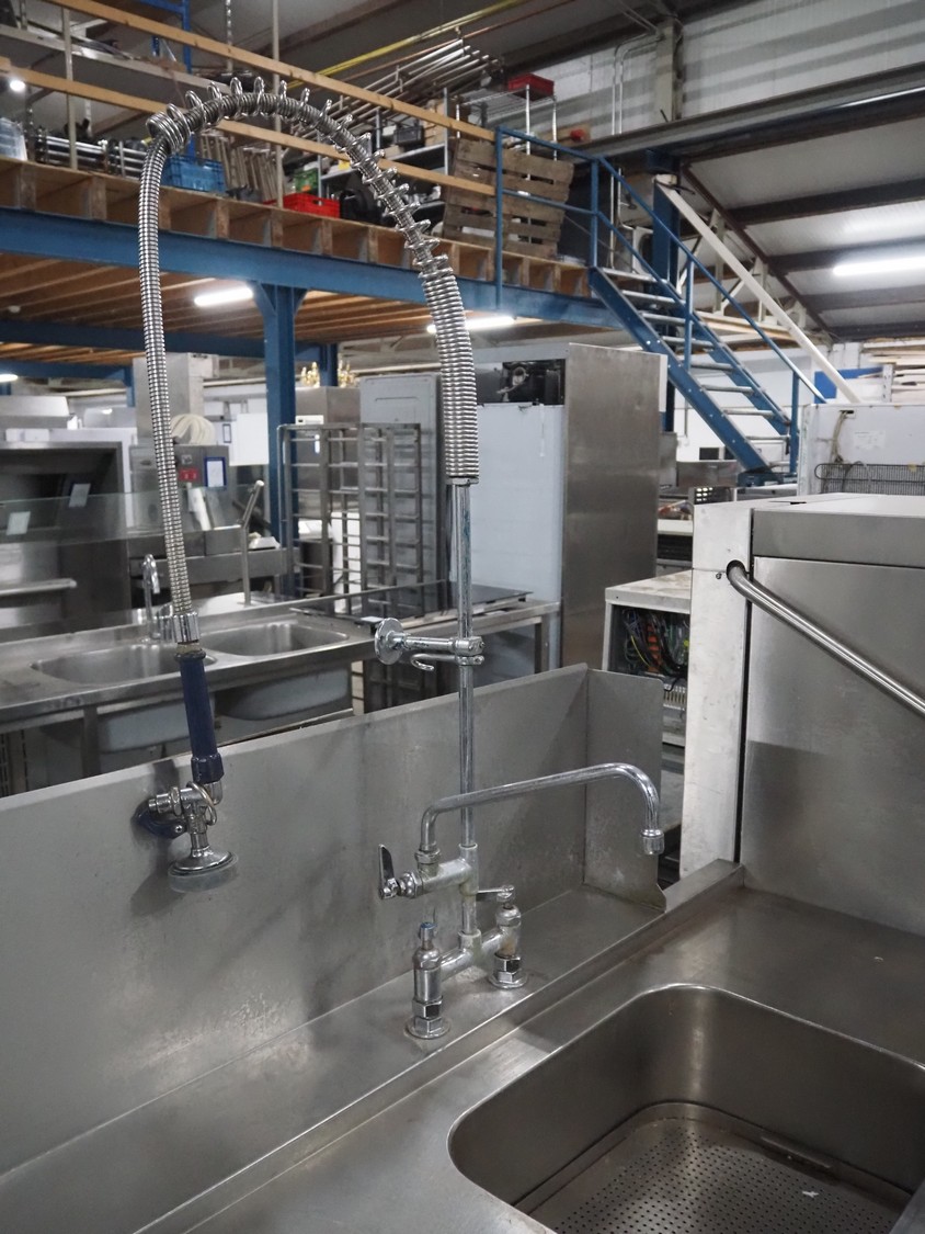 Hobart dishwasher with sink and roller conveyor, model dishwasher: BARAID900-10N, serial number: 86585373, year of construction: 2009, 400 V, 3 Ph, 50 Hz, 14.7 A, 7 kW, dimensions: 800 mm x 750 mm x 1500 mm, dimensions roller conveyor: 2050 mm x 630 mm x 900 mm, dimensions sink: 1700 mm x 740 mm x 1980 mm.