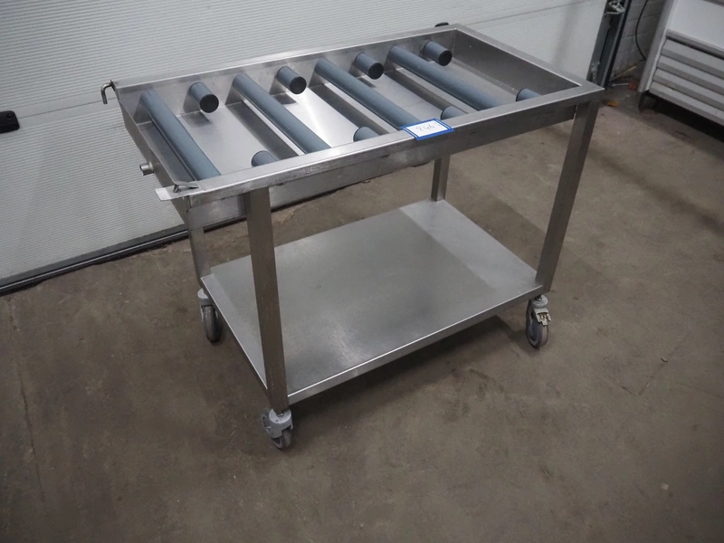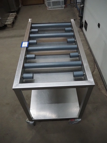 S/s roller conveyor for dishwasher, roller length: 530 mm, total dimensions: 1150 mm x 620 mm x 900 mm.