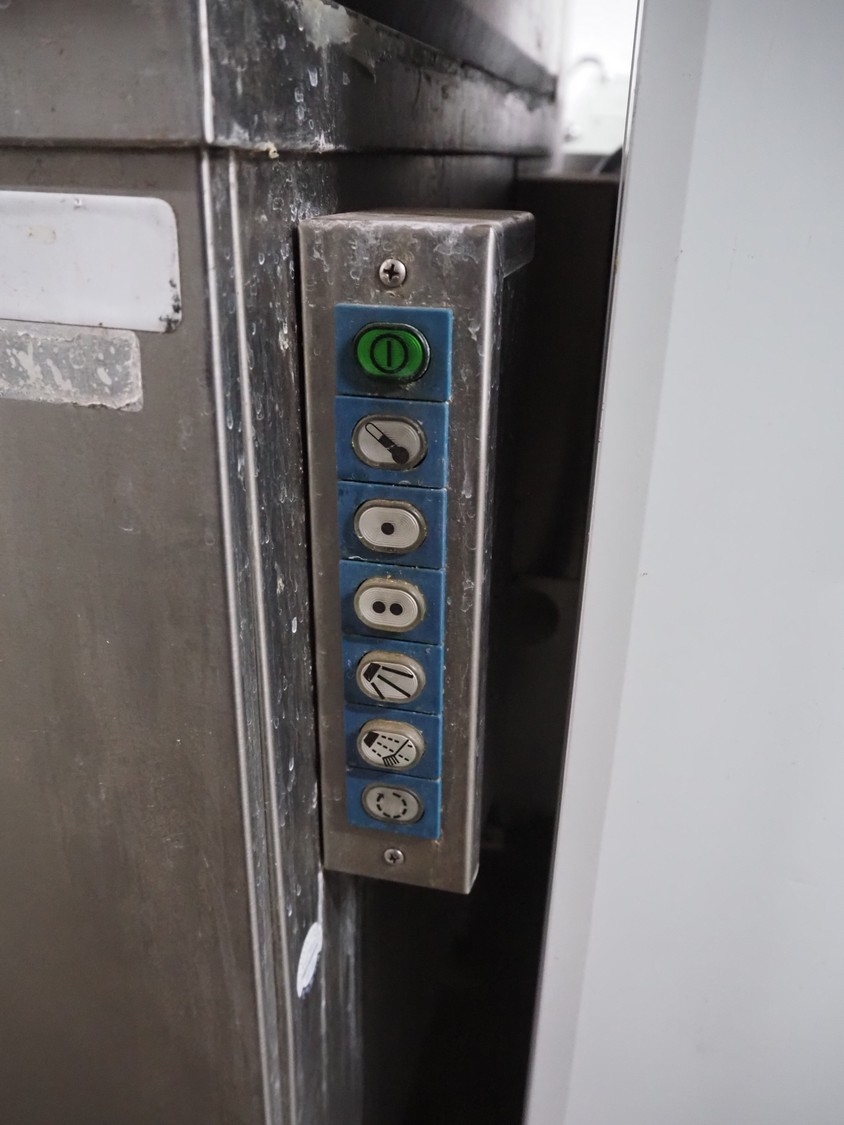 Winterhalter dishwasher, inside dimensions: 500 mm x 500 mm, total dimensions: 620 mm x 800 mm x 1440 mm.