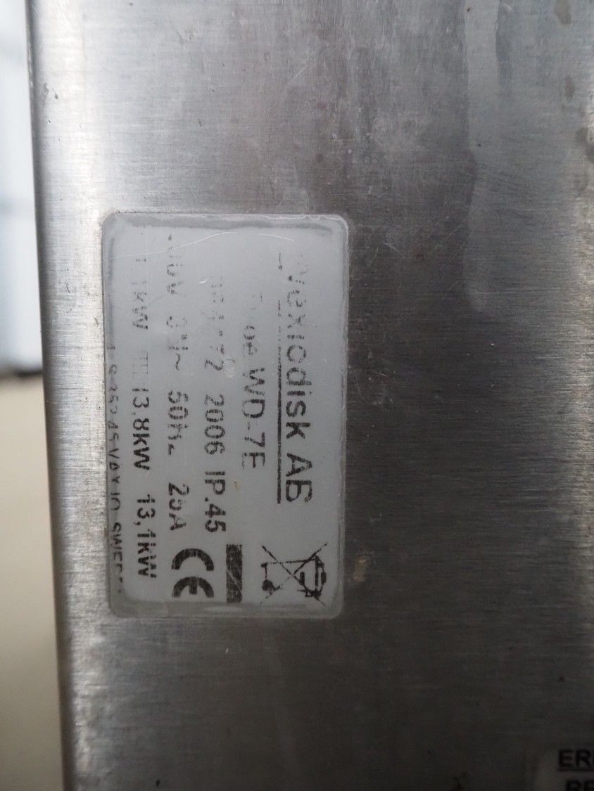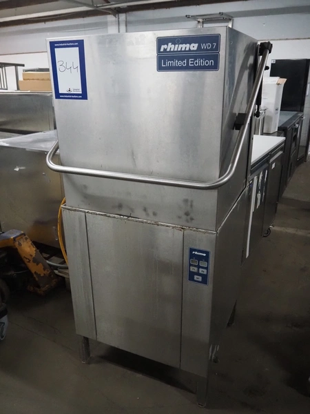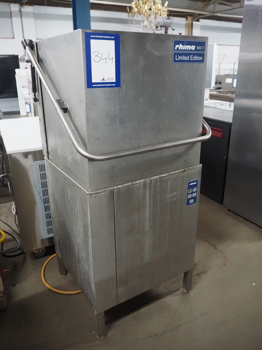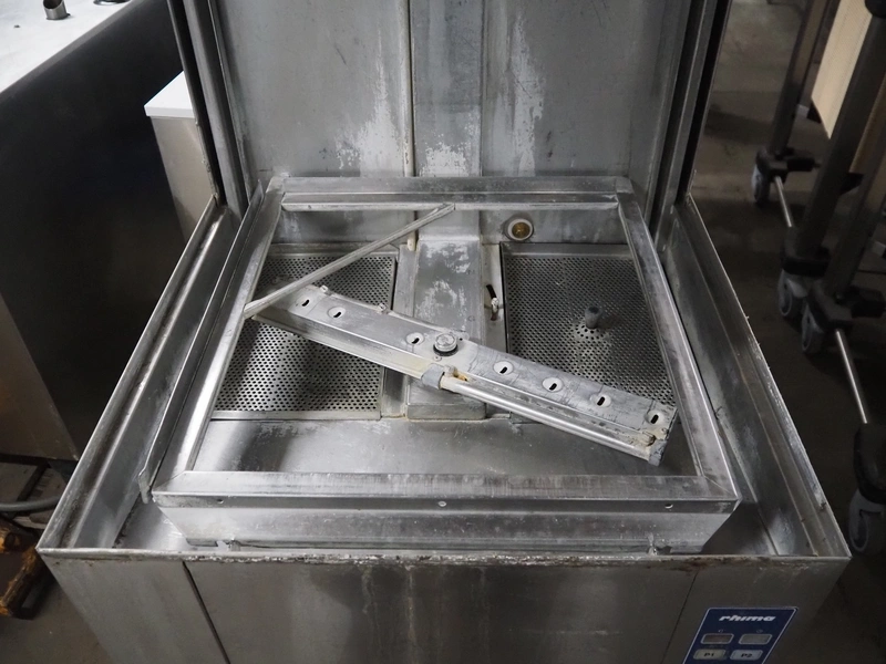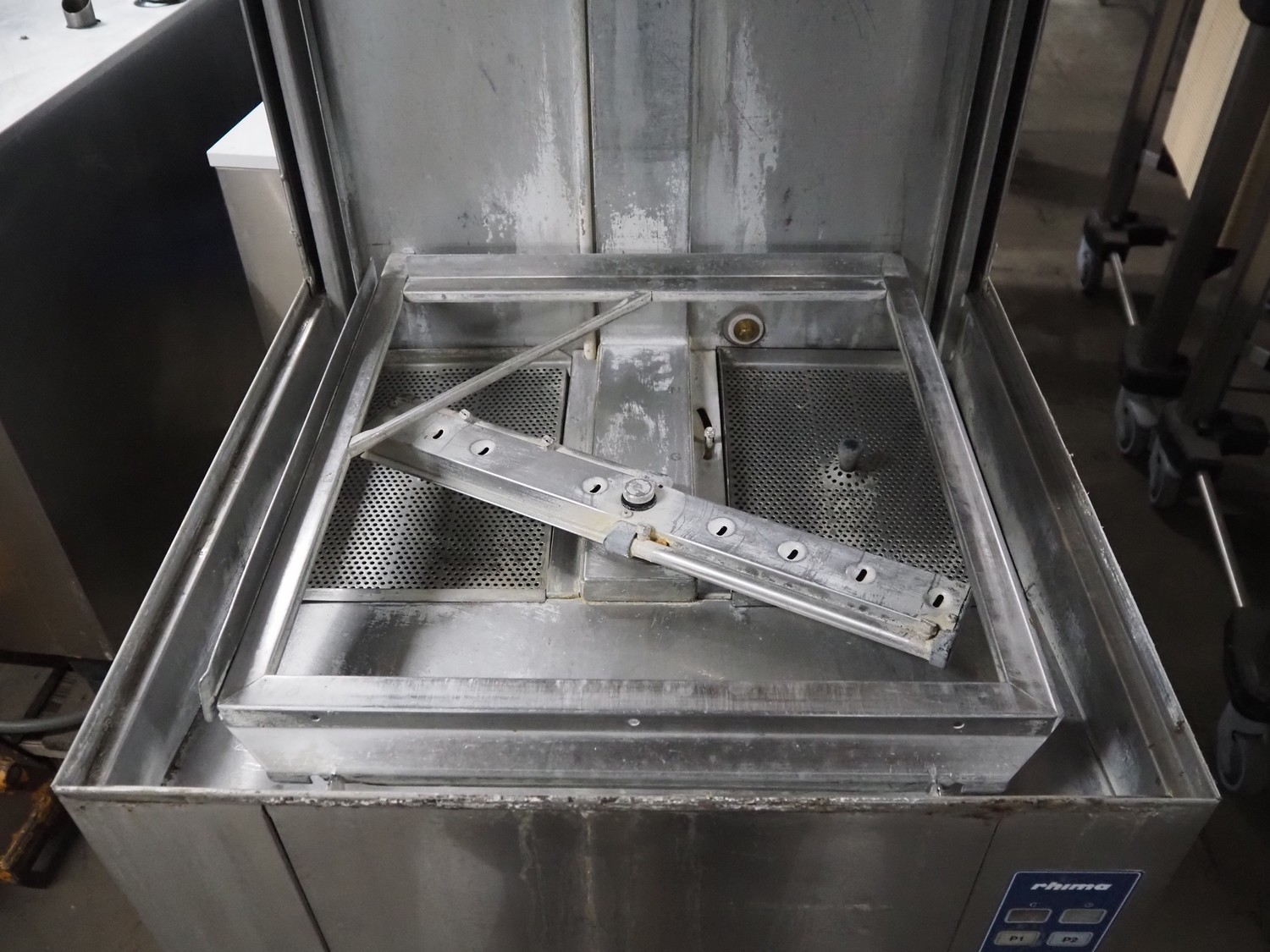 Rhima dishwasher, type: WD-7E, year of construction: 2006, 400 V, 3 Ph, 50 Hz, 25 A, 13.1 kW, inside dimensions: 500 mm x 500 mm, total dimensions: 660 mm x 710 mm x 1500 mm.
