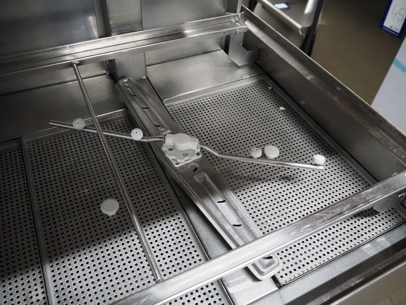 Meiko dishwasher, inside dimensions: 1170 mm x 580 mm, total dimensions: 1180 mm x 860 mm x 1440 mm.