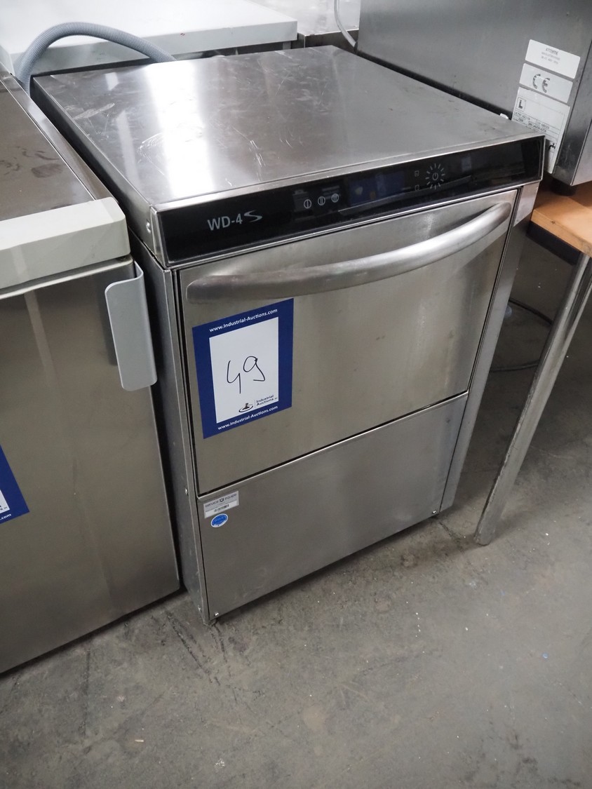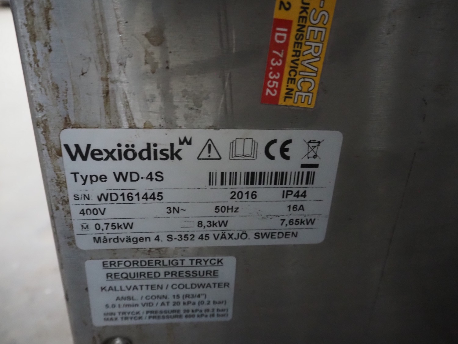 Rhima dishwasher, type: WD-4S, serial number: WD161445, year of construction: 2016, 400 V, 3 Ph, 50 Hz, 16 A, 7.65 kW, inside dimensions: 510 mm x 530 mm, total dimensions: 600 mm x 670 mm x 860 mm.