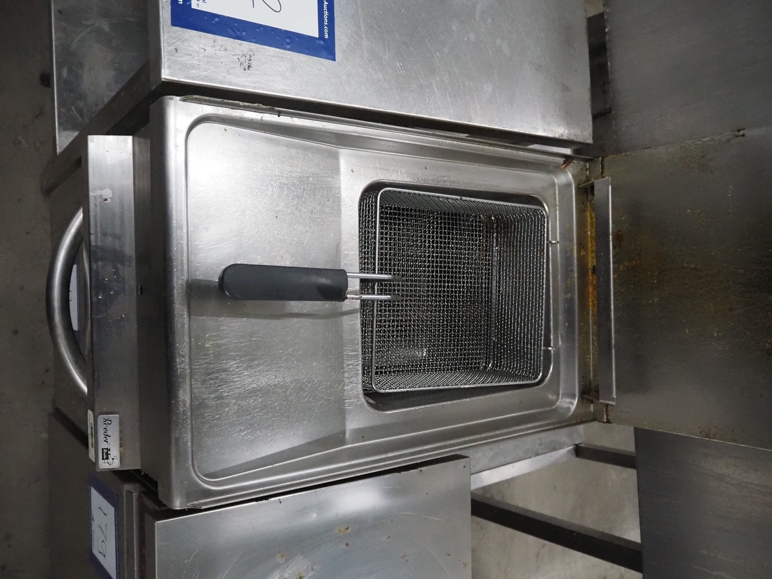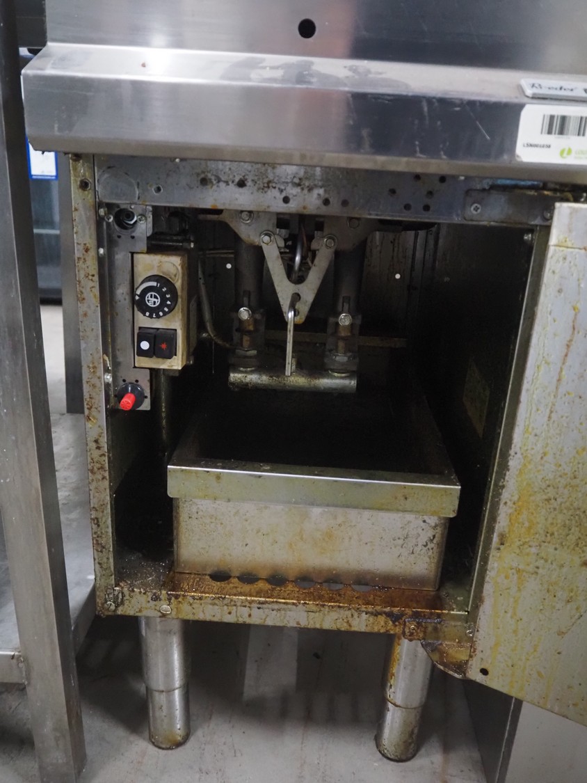 Roeder fryer, model: GF477, inside dimensions: 280 mm x 340 mm x 300 mm, total dimensions: 400 mm x 750 mm x 1270 mm.