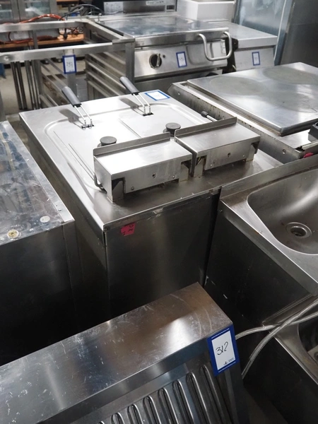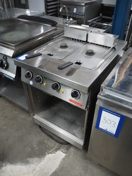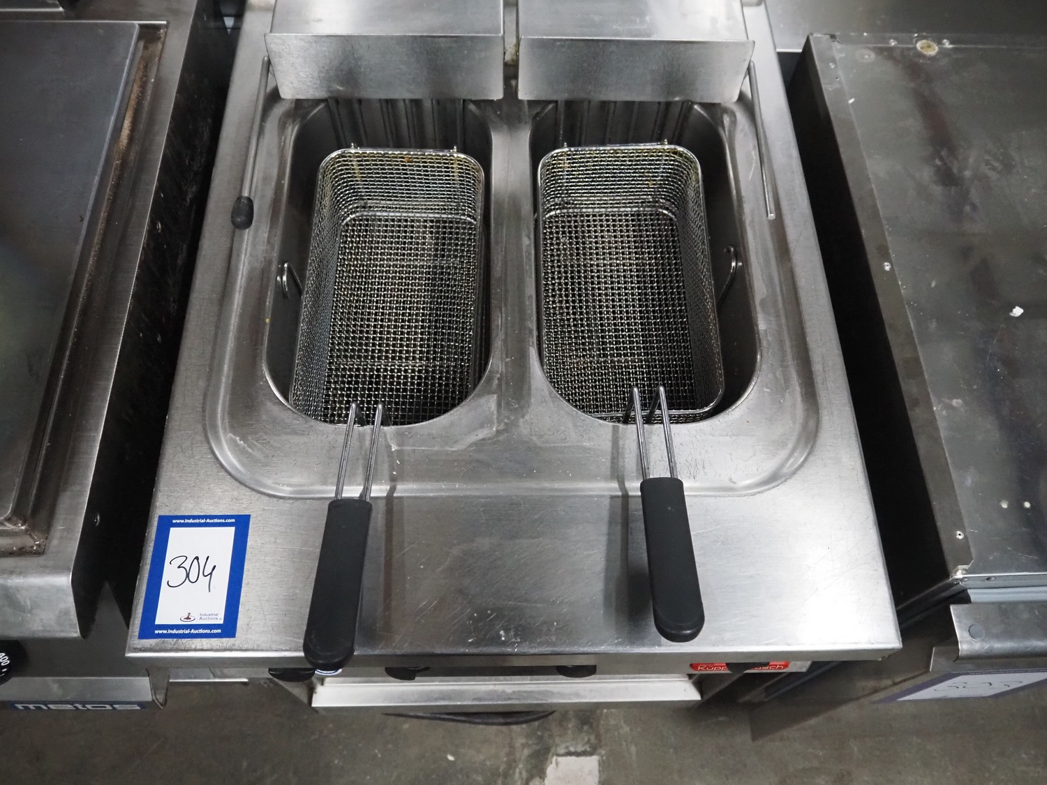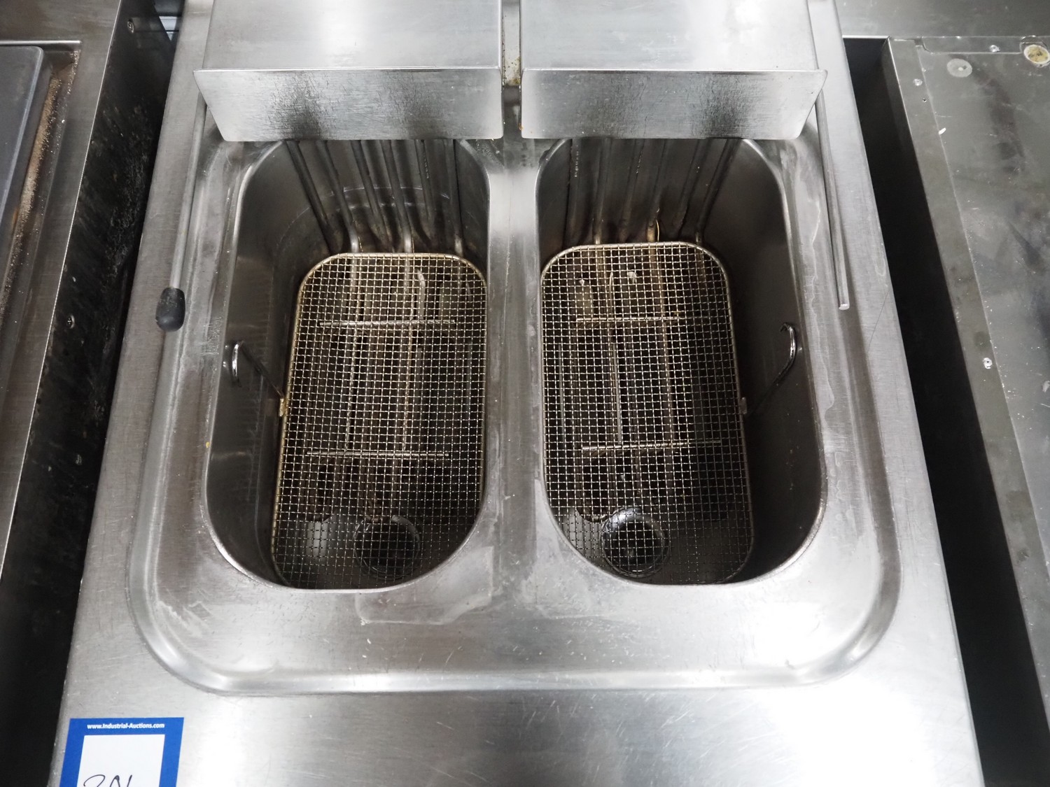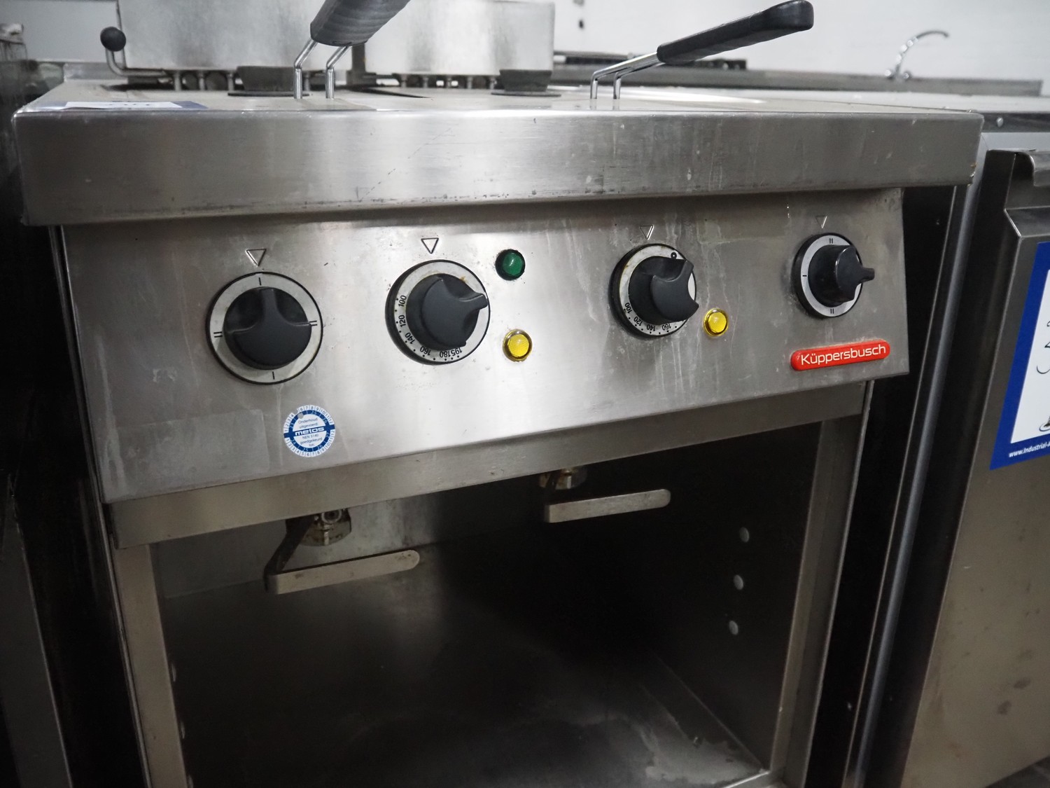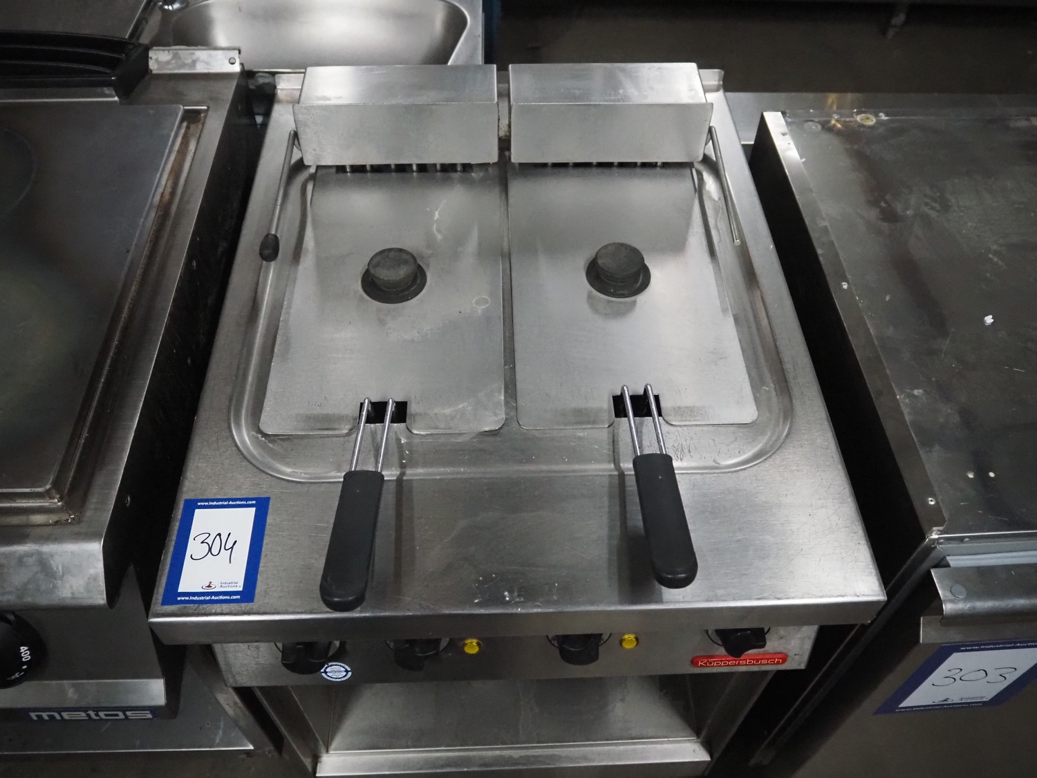 Küppersbusch double fryer, inside dimensions: (2x) 200 mm x 370 mm x 150 mm, total dimensions: 600 mm x 750 mm x 940 mm.