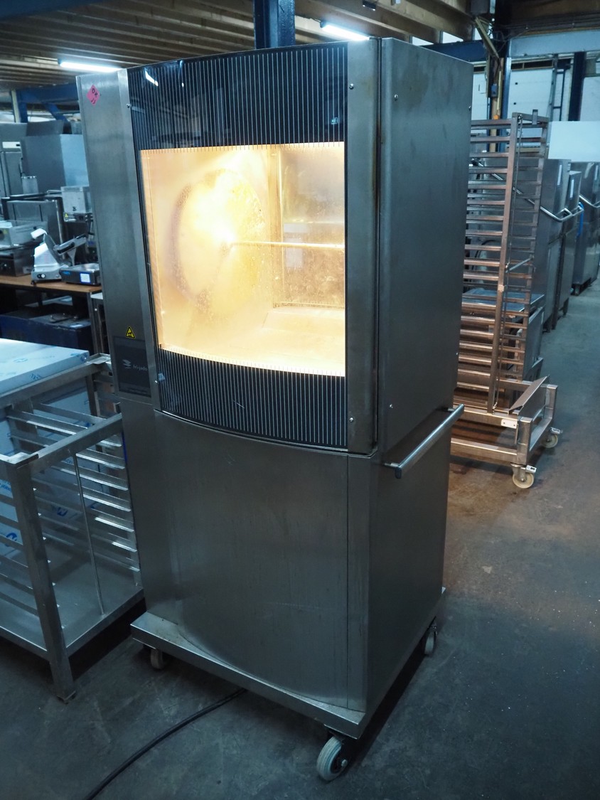 Fri-Jado b.v mobile rotary grill, model: STG5-P, number: 100061969, 400/230 V, 50/60 Hz, 9 A, 6100 W, dimensions: 900 mm x 650 mm x 1750 mm.