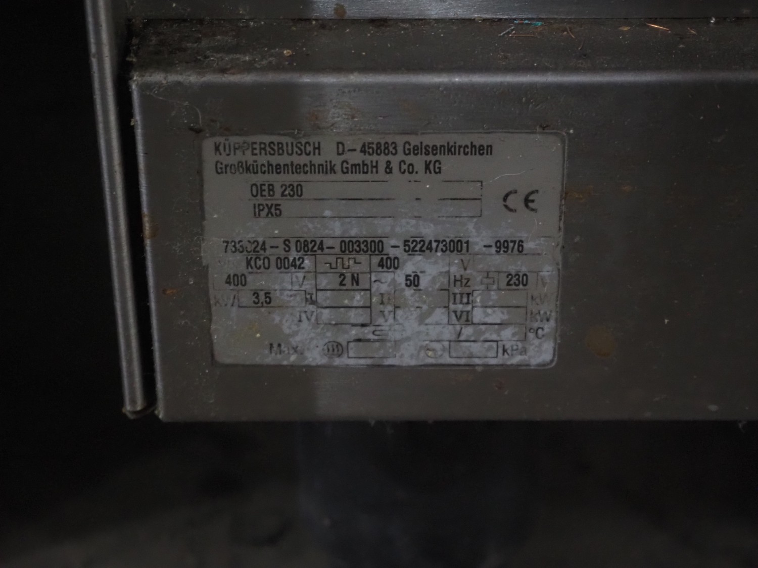 Küpperbusch roasting pan, type: OEB 230, 400 V, 2 Ph, 50 Hz, 3.5 kW, dimensions: 510 mm x 800 mm x 750 mm.