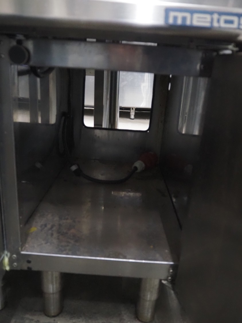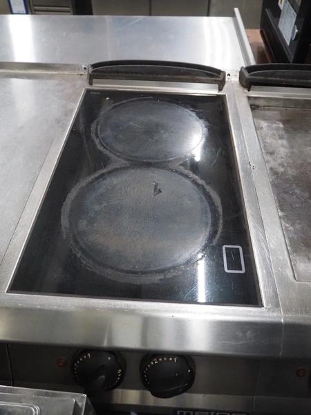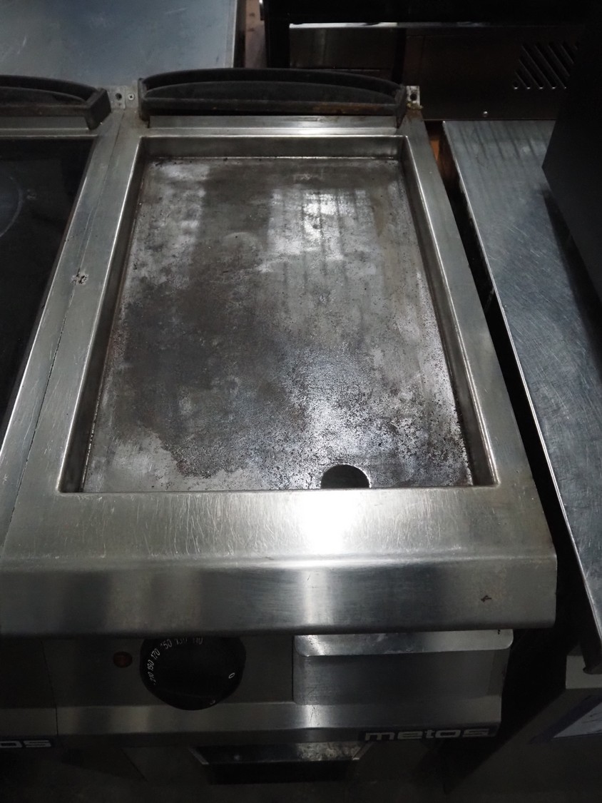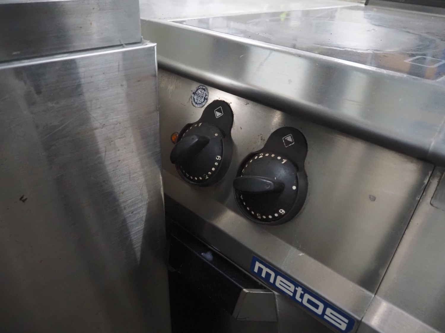 Metos grill and ceramic hob, dimensions grill: 530 mm x 340 mm x 40 mm, dimensions ceramic hob: 570 mm x 340 mm, total dimensions: 1400 mm x 770 mm x 960 mm.