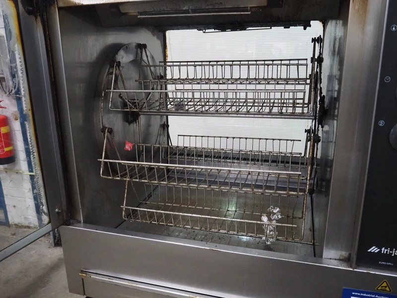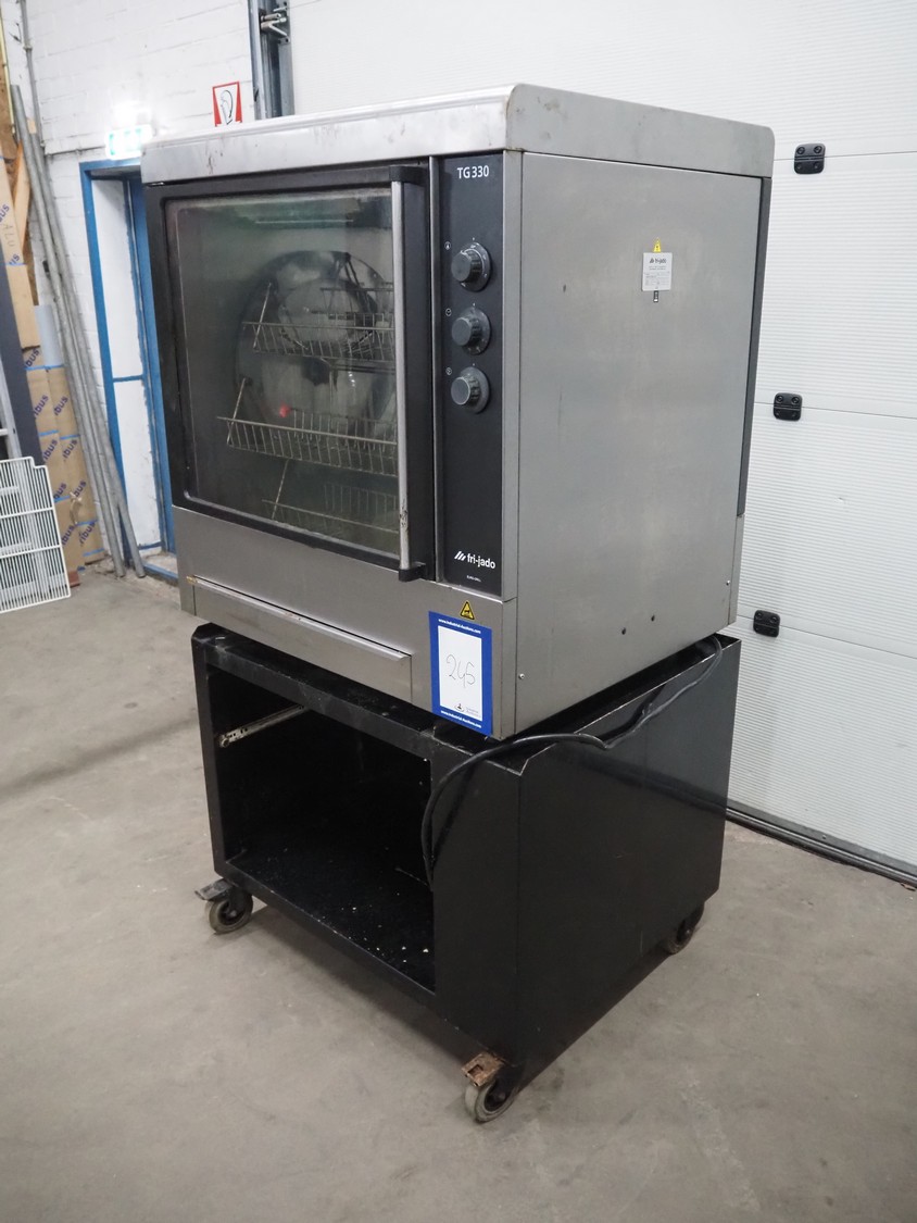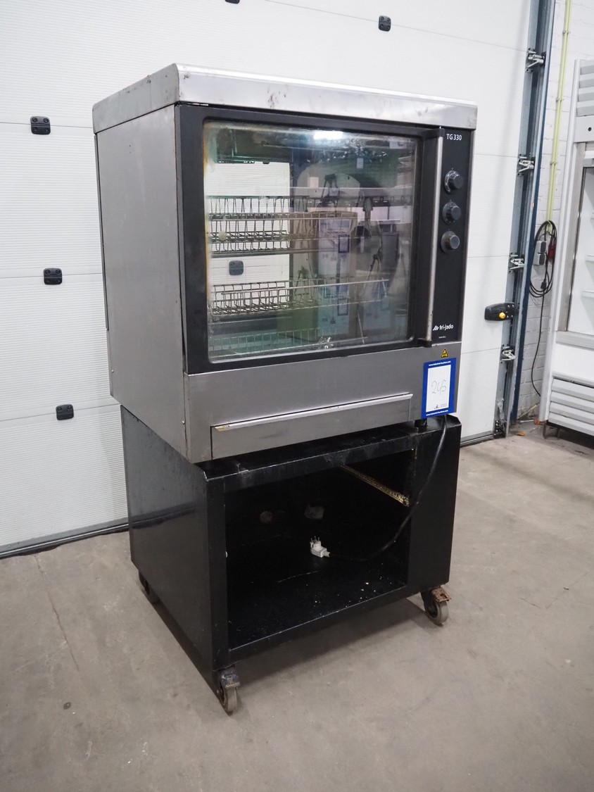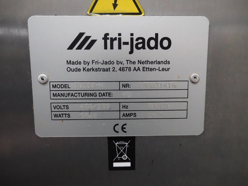 Fri-jado rotary grill, model: TG330-H, number: 1000031416, 230/400 V, 50/60 Hz, 14.5 A, 9500 W, 5 baskets, dimensions: 990 mm x 790 mm x 1850 mm.