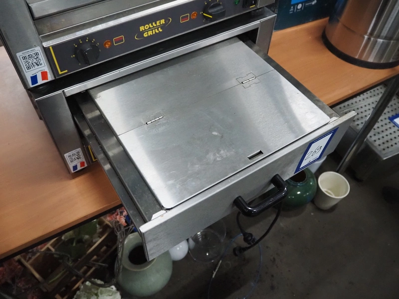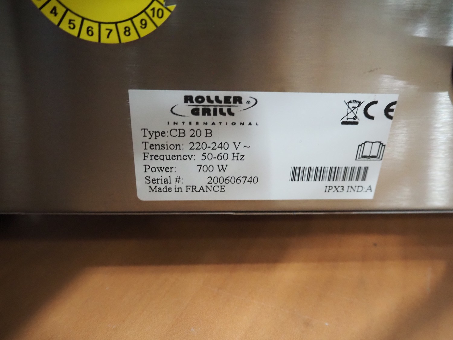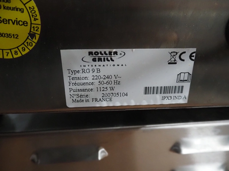 Roller Grill grill, type: RG 9 B, serial number: 200705104, 220-240 V, 50-60 Hz, 1125 W, roller length: 440 mm, total dimensions: 540 mm x 460 mm x 490 mm.