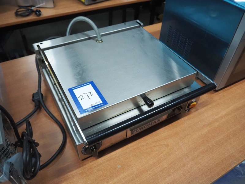 Euromax grill, model: 1370RRTDX, serial number: 55BJJB0069, year of construction: 2020/02, 220/240 V, 50/60 Hz, 13 A, 3000 W, weight: 13 kg, dimensions grill: 340 mm x 290 mm, total dimensions: 440 mm x 420 mm x 150 mm.