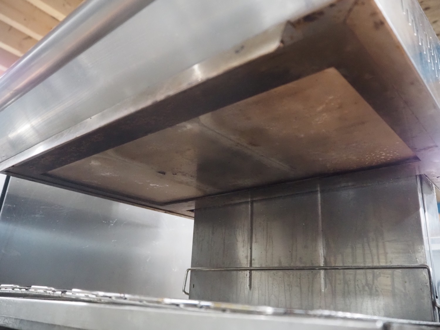 Giorik salamander grill, dimensions grill: 540 mm x 360 mm, total dimensions: 570 mm x 580 mm x 530 mm.