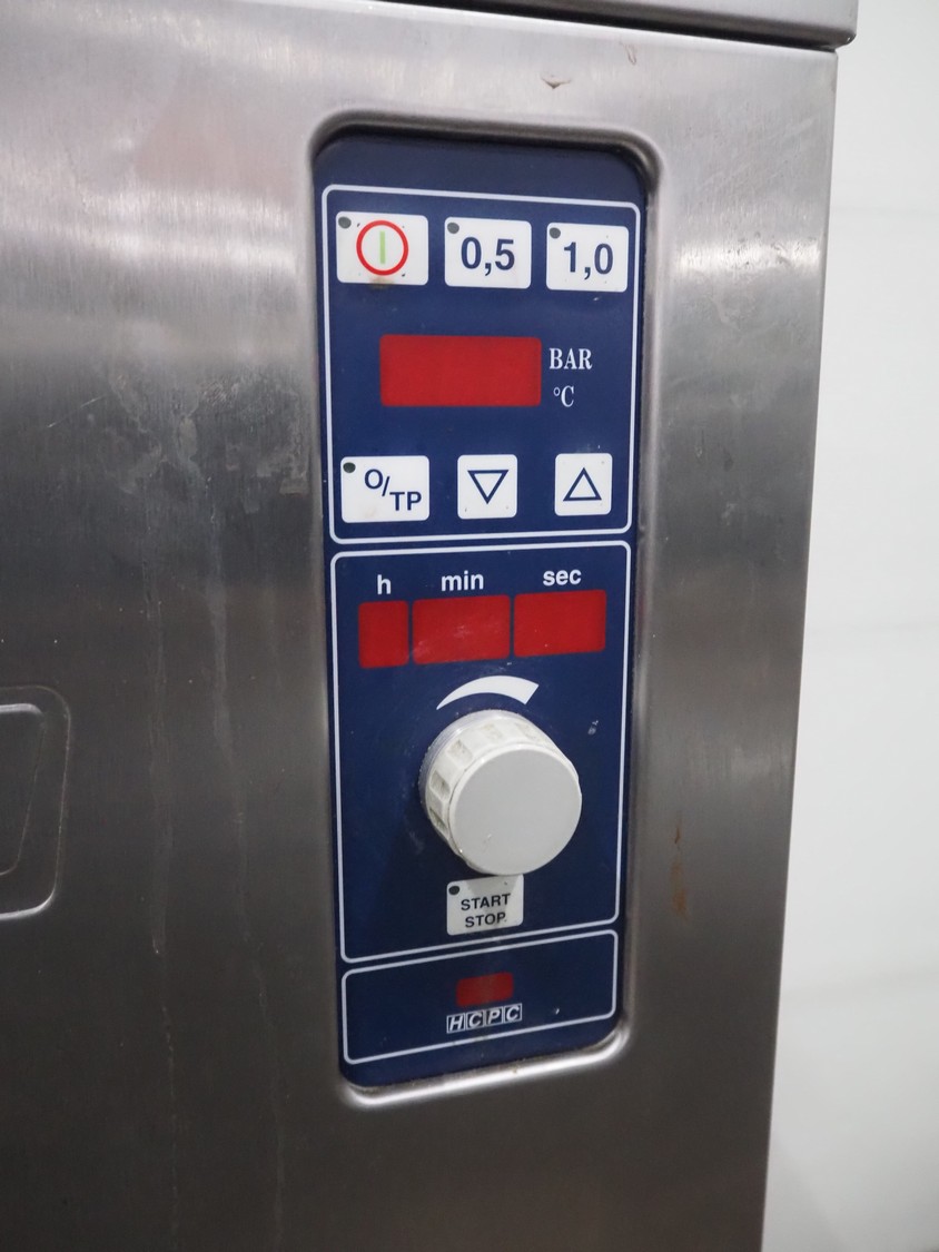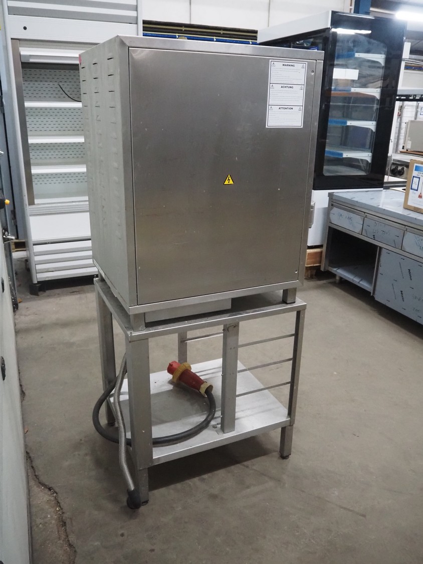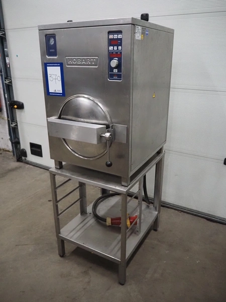 Hobart high speed cooker, model: 305G, serial number: 97-0205-236, year of construction: 2012, 400 V, 3 Ph, 50/60 Hz, 38.7 A, 26.7 kW, 4 floors, floor dimensions: 540 mm x 320 mm, inside dimensions: Ø 380 mm x 620 mm, total dimensions: 830 mm x 600 mm x 1690 mm.
