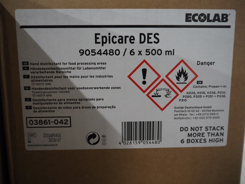 Ecolab hand disinfectant, type: Epicare Des, (150x) 500 ml.