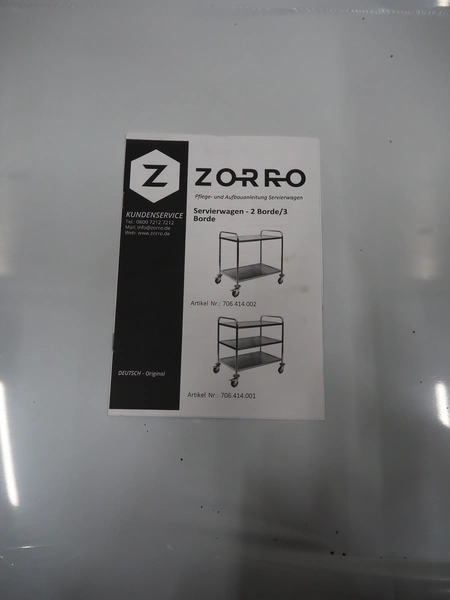 Zorro B.V. s/s serving trolley, 2 floors, maximum load: 50 kg, dimensions: 860 mm x 540 mm x 940 mm.