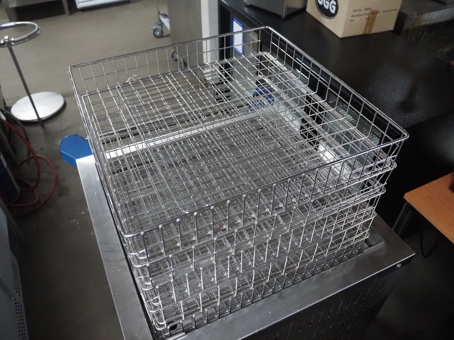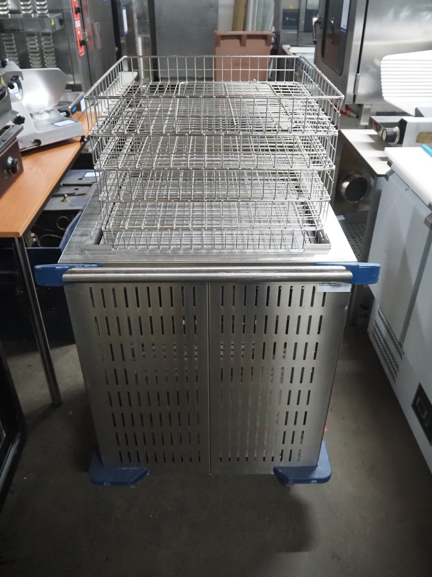 Blanco trolley for s/s trays, type: Blanco Inmotion Korbspender Cek 53/53, serial number: 47261, 3 trays, tray dimensions: (3x) 500 mm x 500 mm x 75 mm, dimensions: 720 mm x 720 mm x 930 mm.