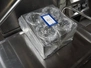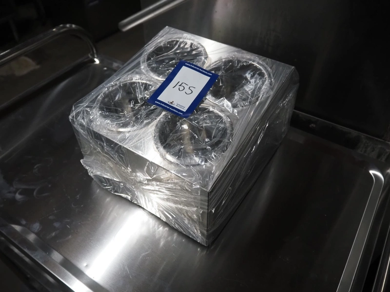 S/s knife/fork box, 4 holes, dimensions holes: (4x) Ø 100 mm x 100 mm, total dimensions: 330 mm x 280 mm x 200 mm.
