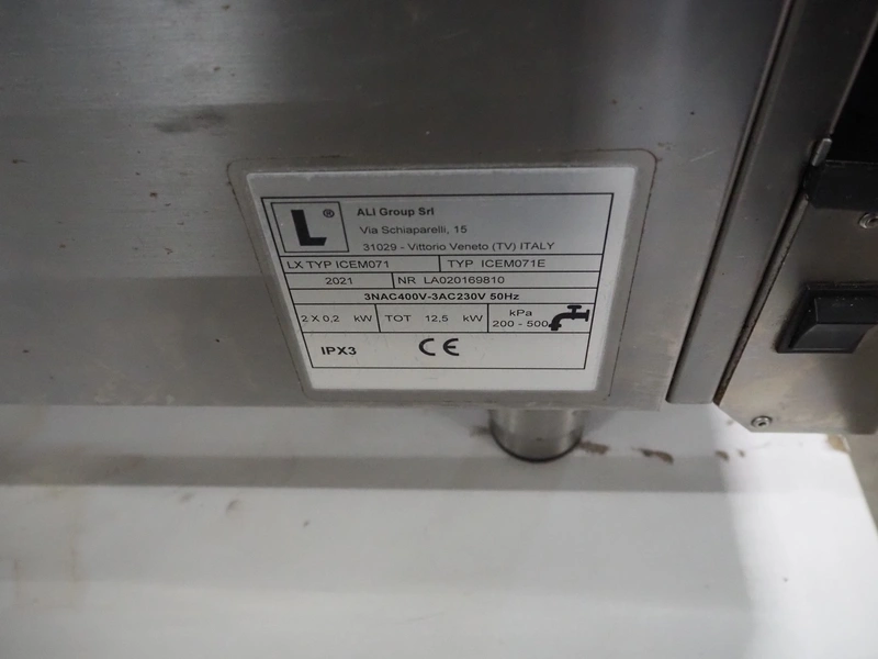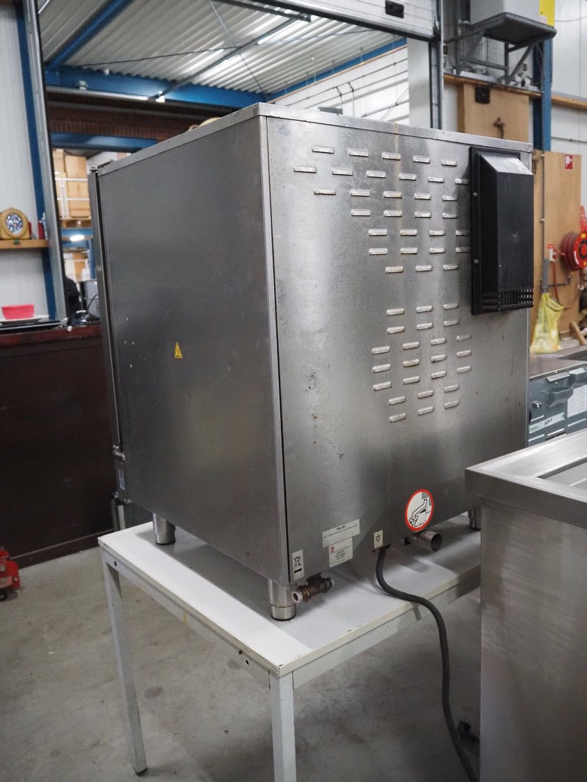 Metos combi steamer, type: ICEM071E, serial number: LA020169810, year of construction: 2021, 230-400 V, 3 PH, 50 Hz, 12.5 kW, 8 floors, floor dimensions: (8x) 540 mm x 420 mm, total dimensions: 780 mm x 730 mm x 950 mm.
