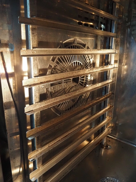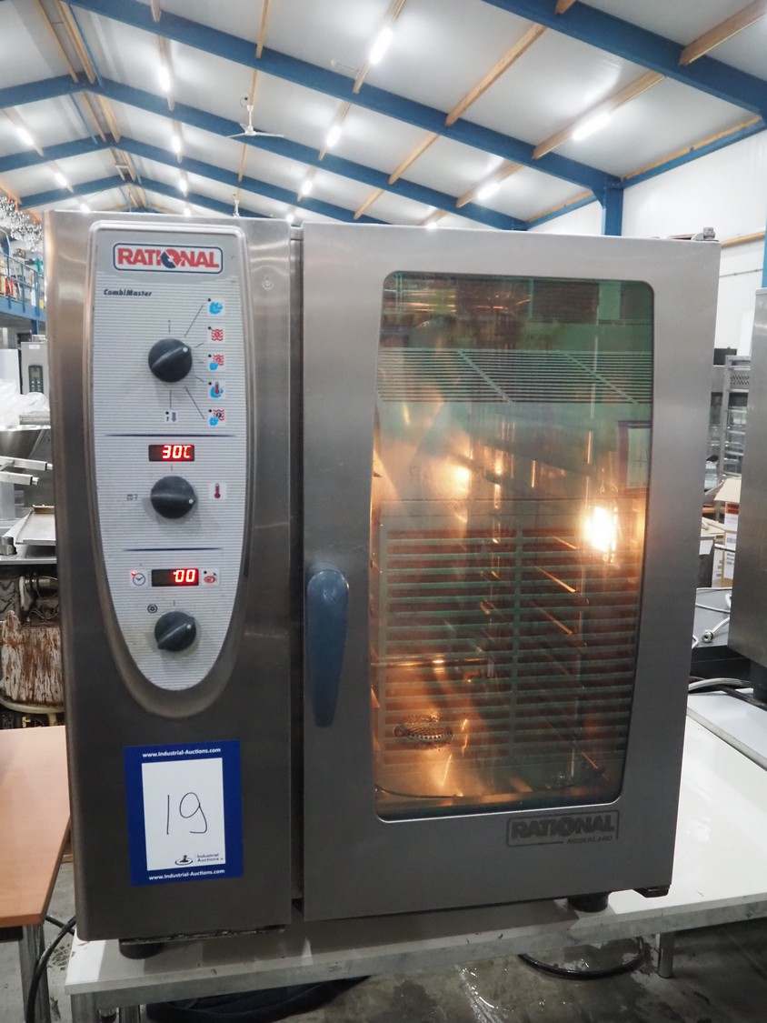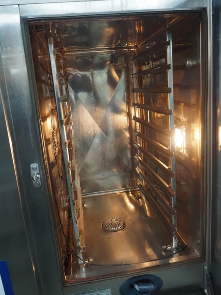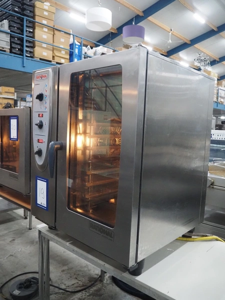Rational combi steamer, 10 floors, floor dimensions: (10x) 540 mm x 330 mm, total dimensions: 850 mm x 820 mm x 1030 mm.